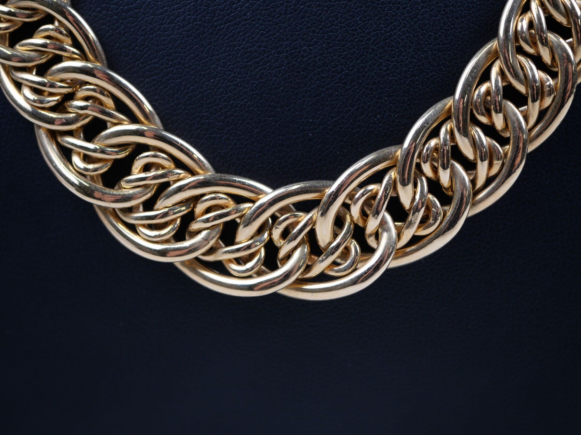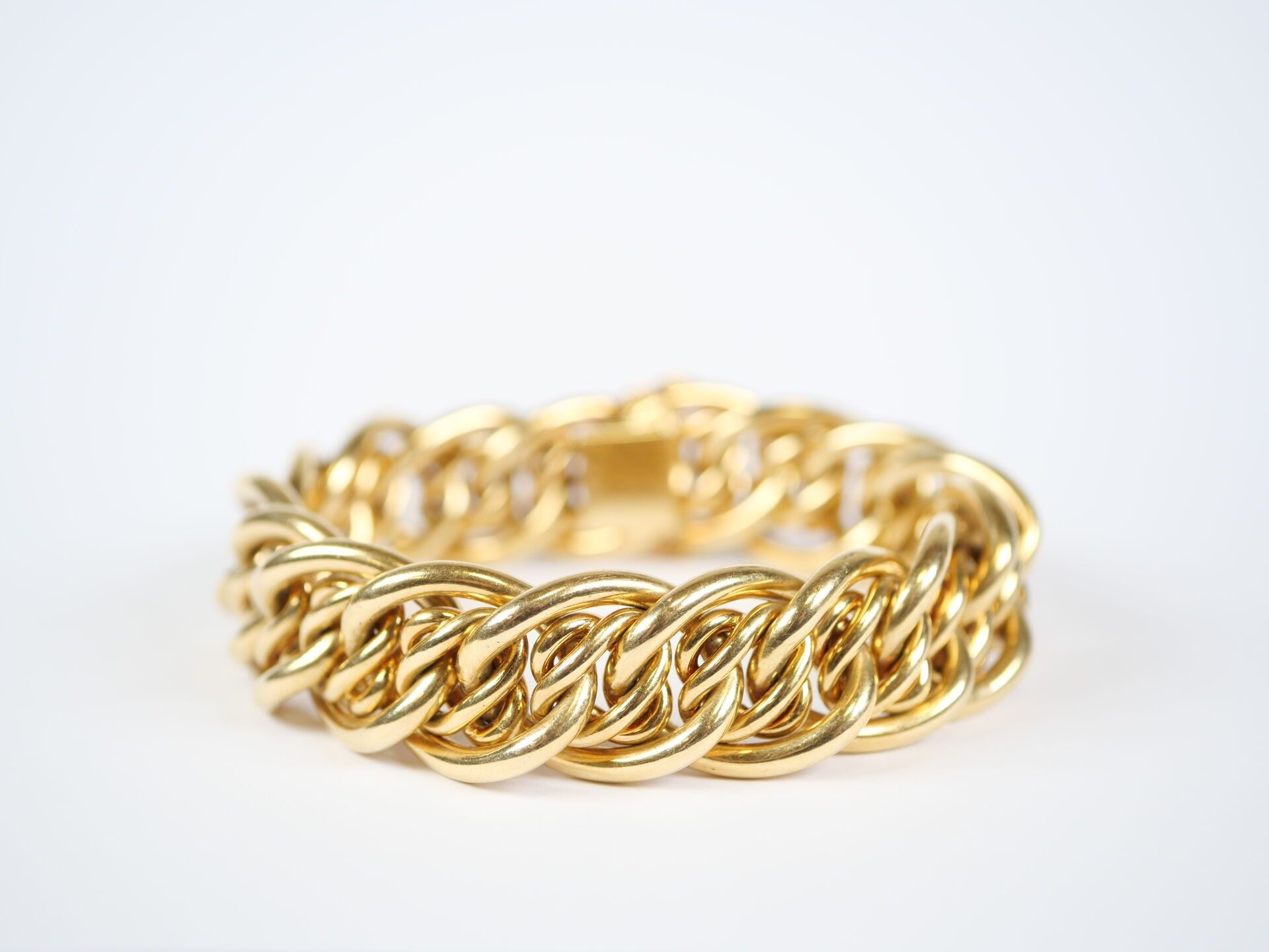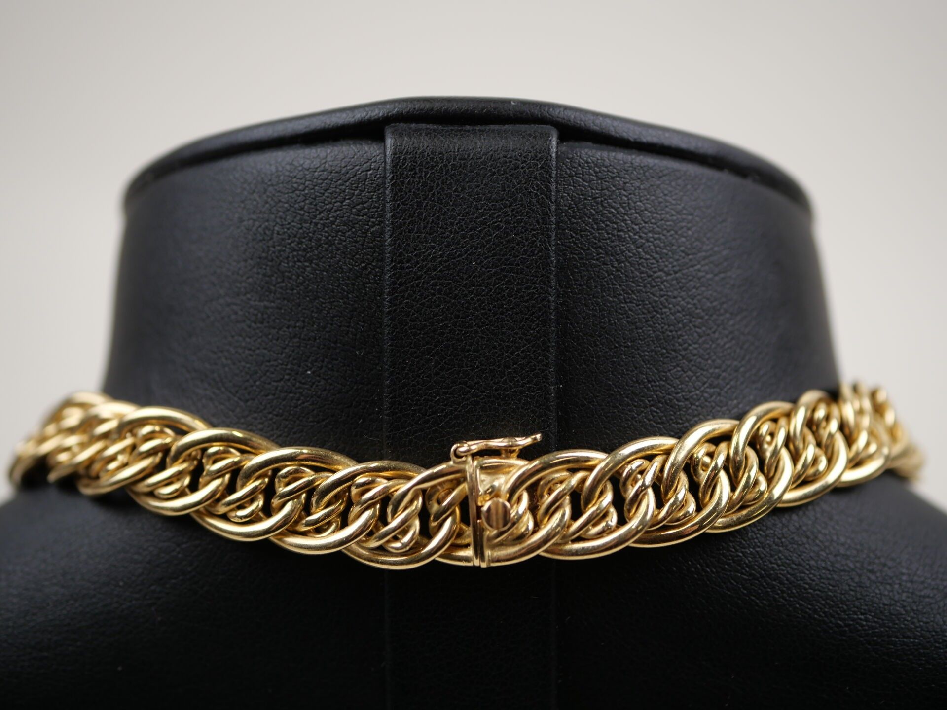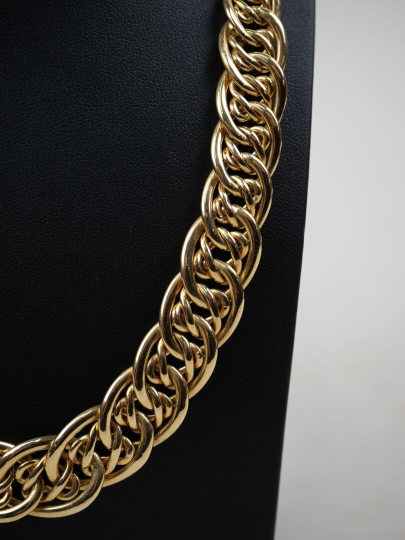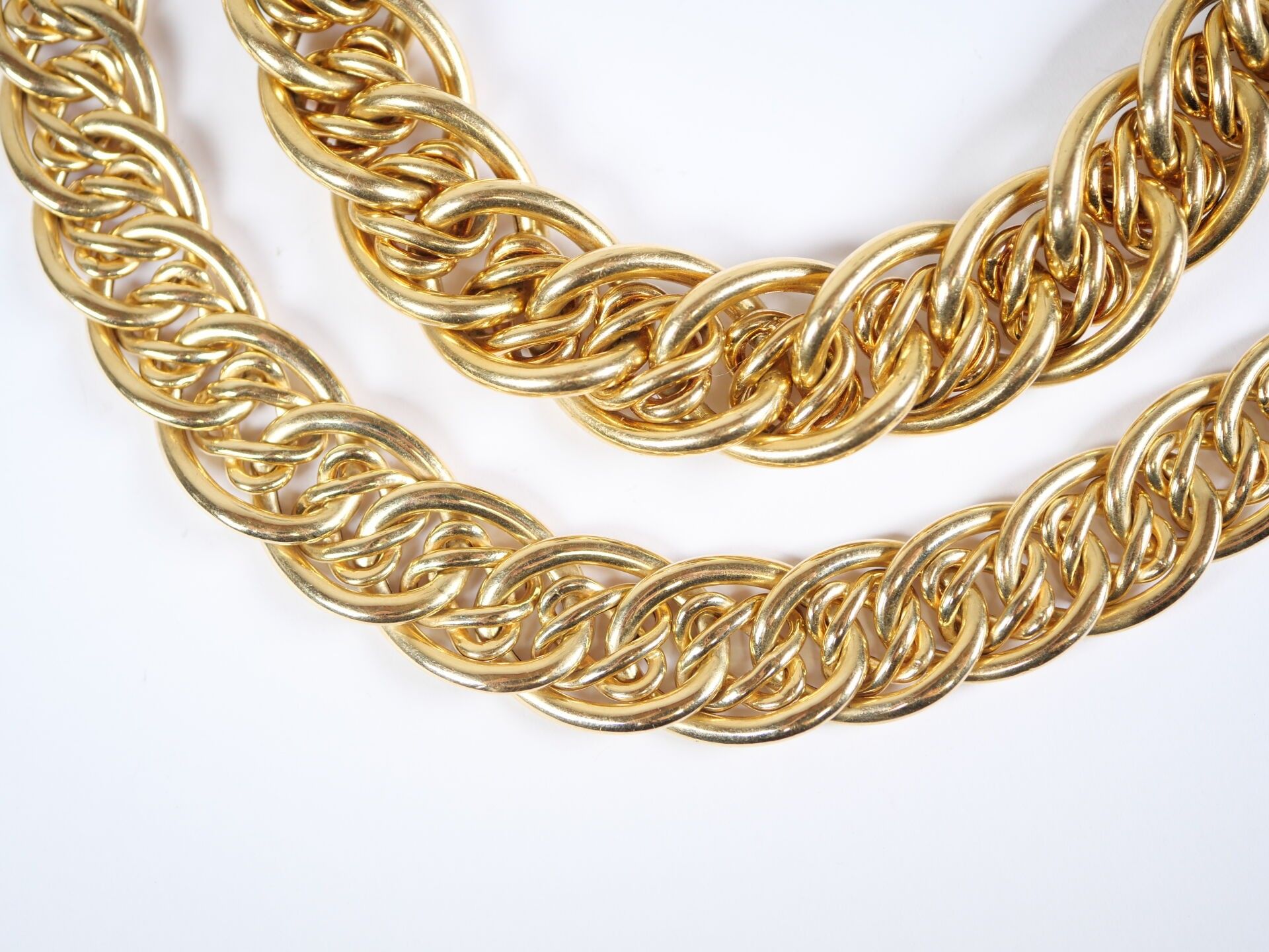 Important set in 18K (750‰) yellow gold with stylised American link comprising a necklace and bracelet.