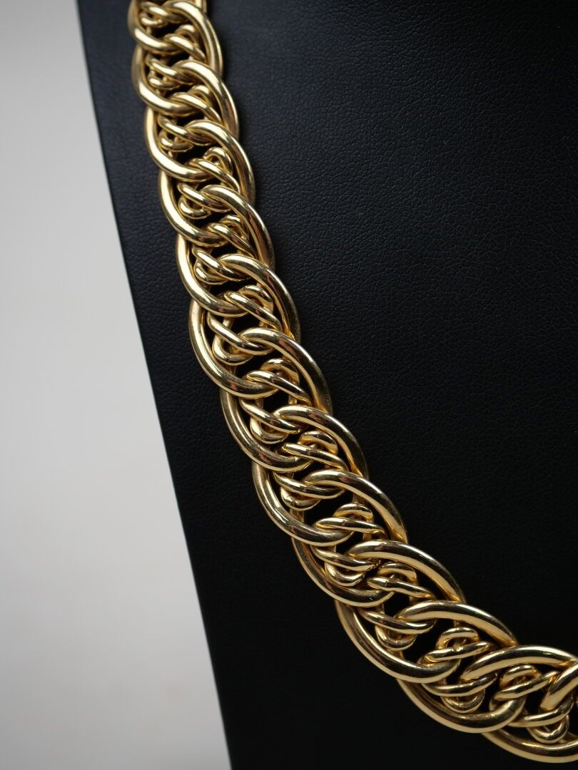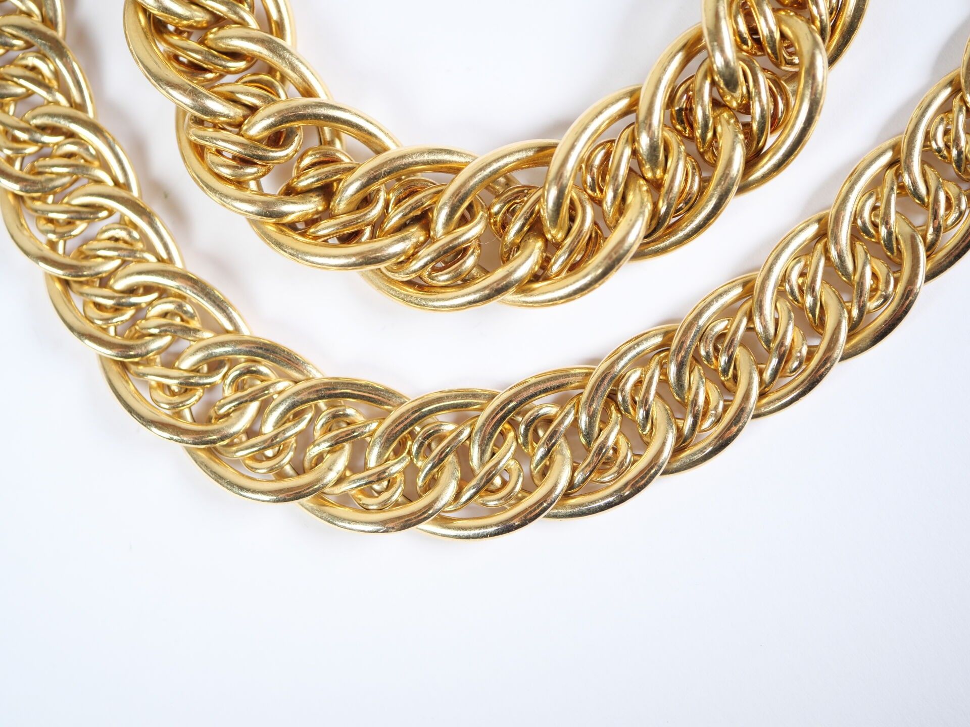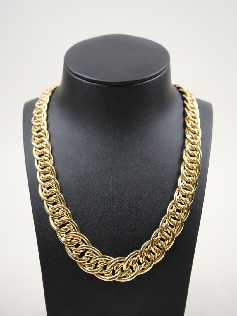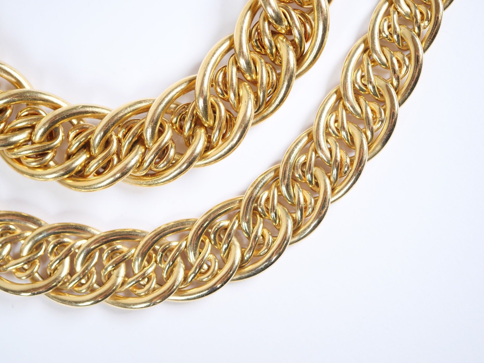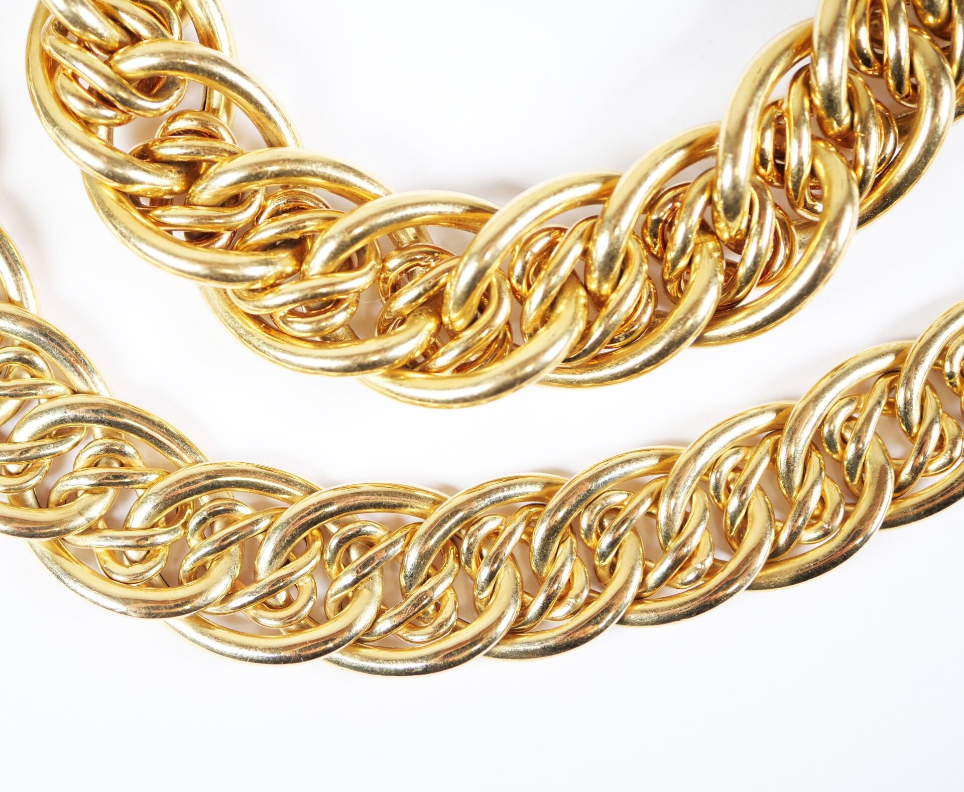 Important set in 18K (750‰) yellow gold with stylised American link comprising a necklace and bracelet.