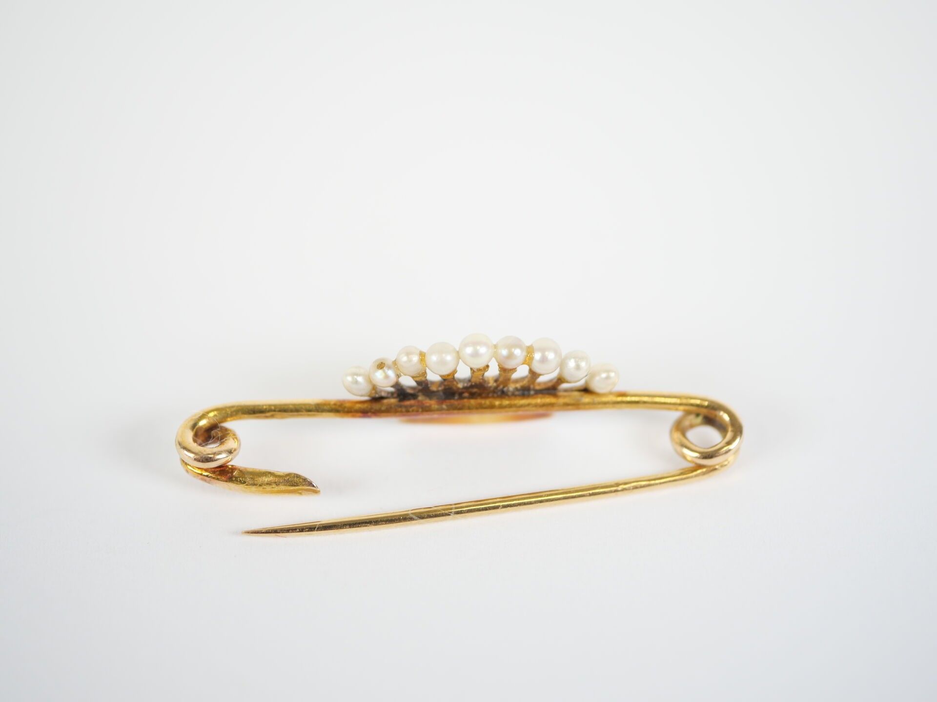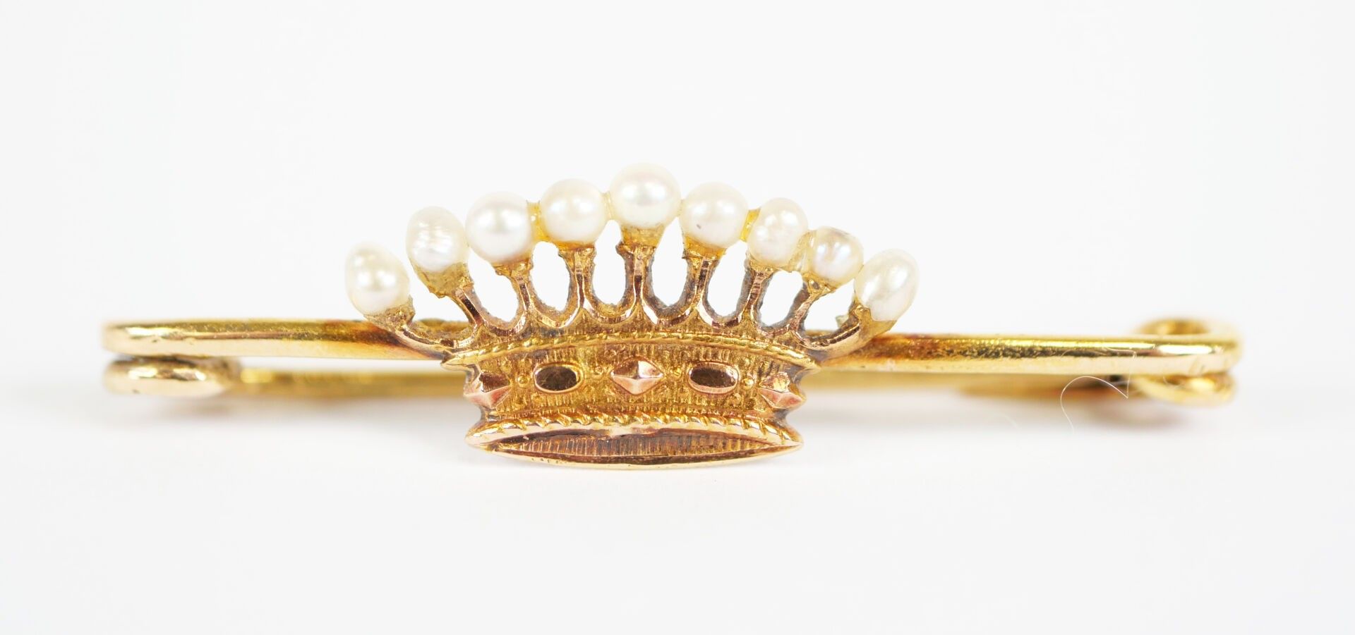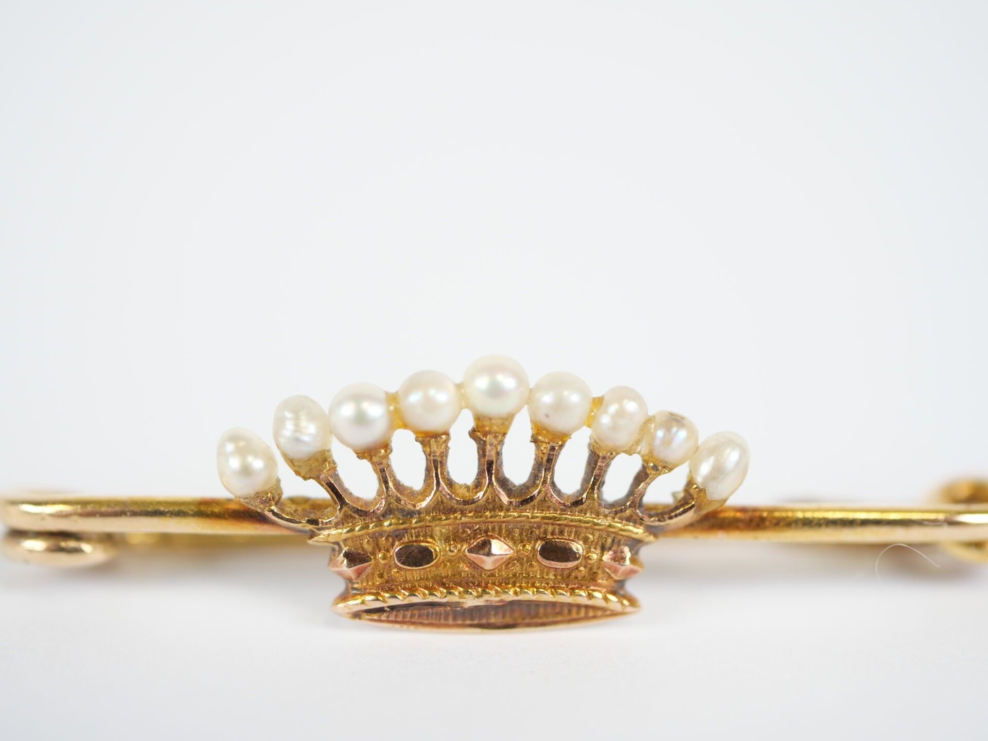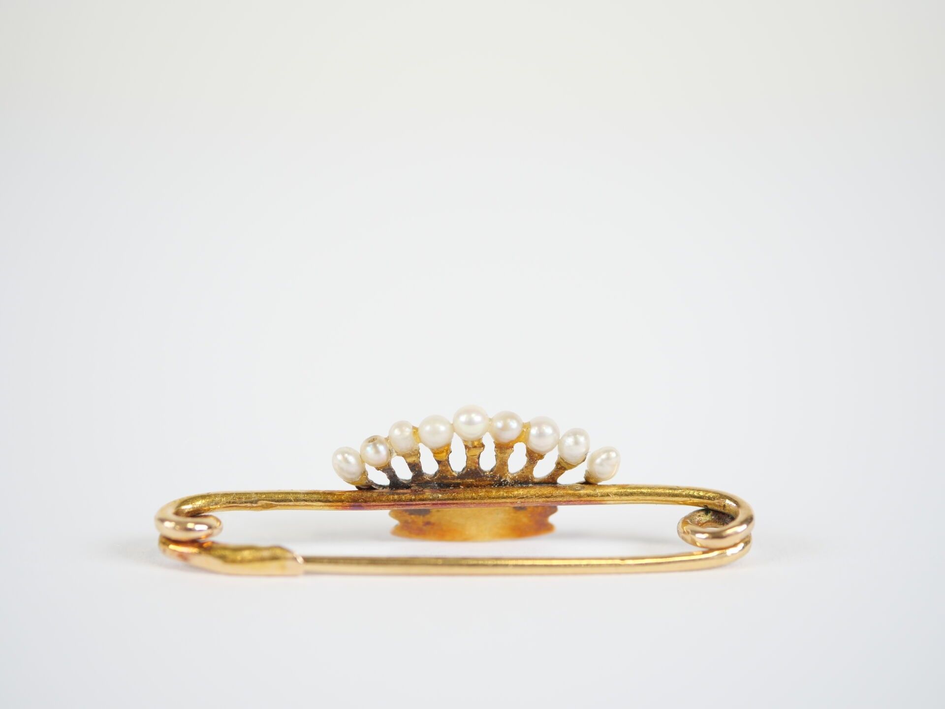 Barrette brooch in 18K (750‰) yellow gold adorned with a count's crown embellished with fine pearls.