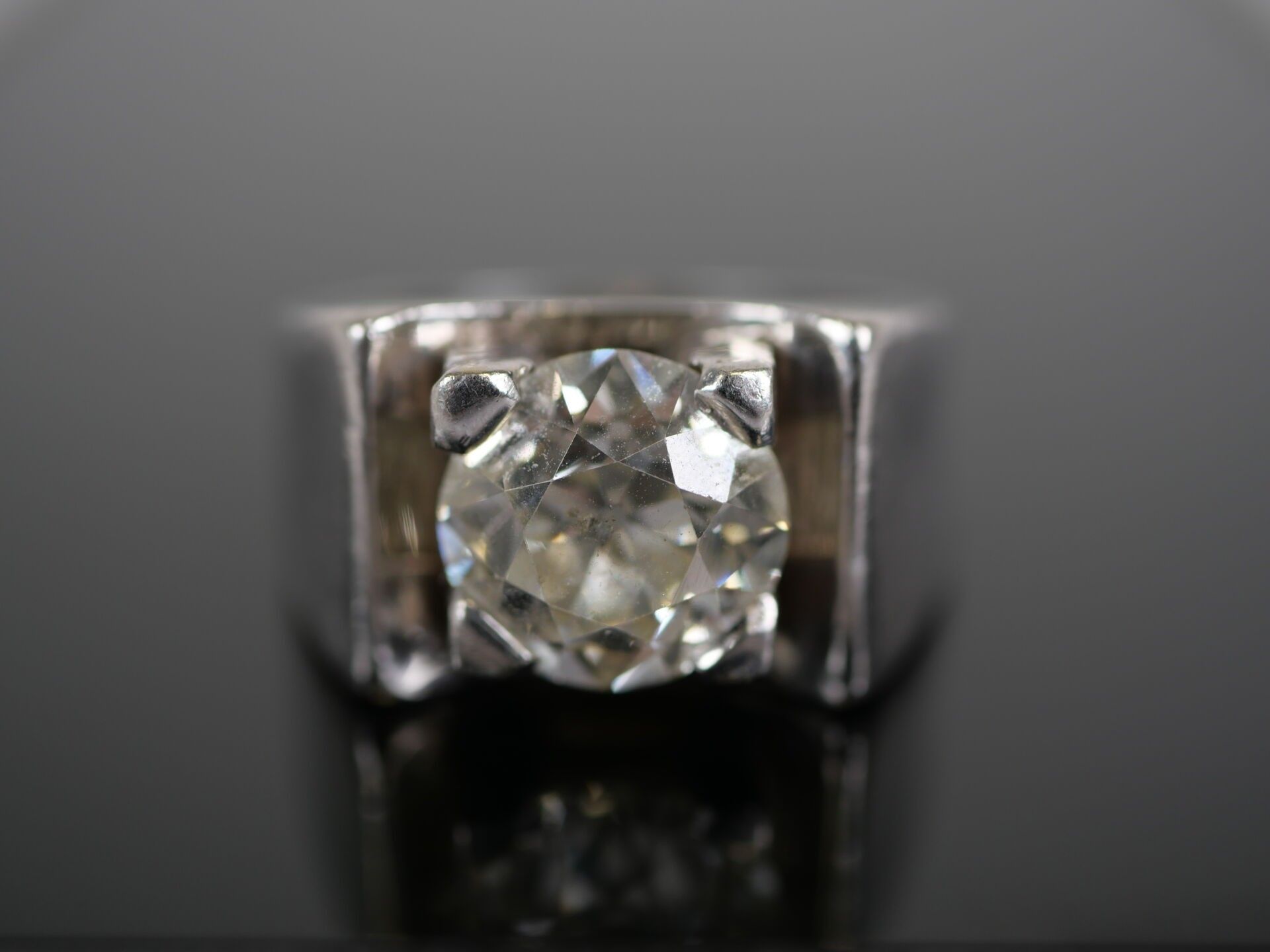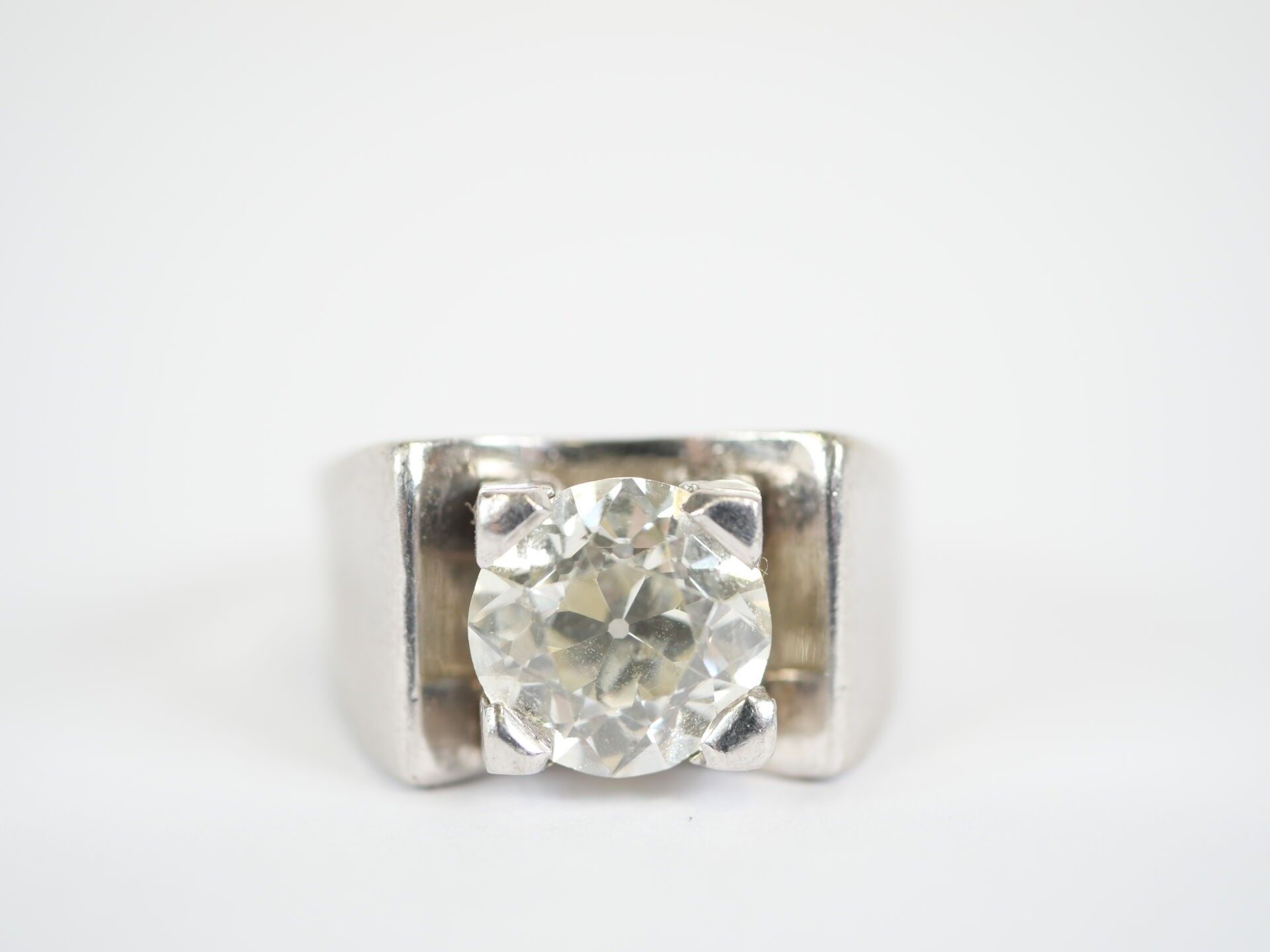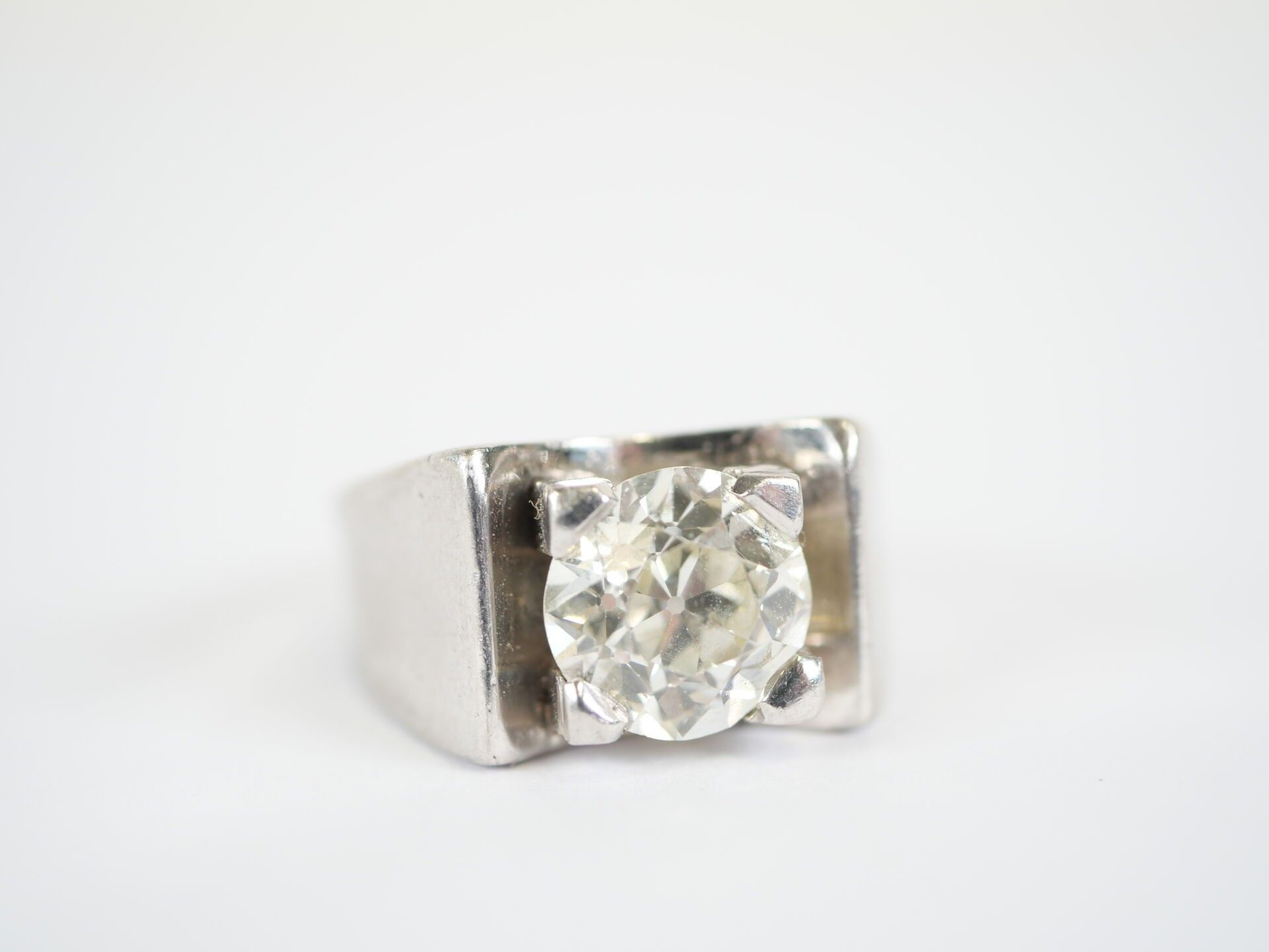 Important signet ring in platinum (850‰) centred with a round old-cut diamond, approximately 2.40/2.70 carats, mounted in a claw-set setting.
