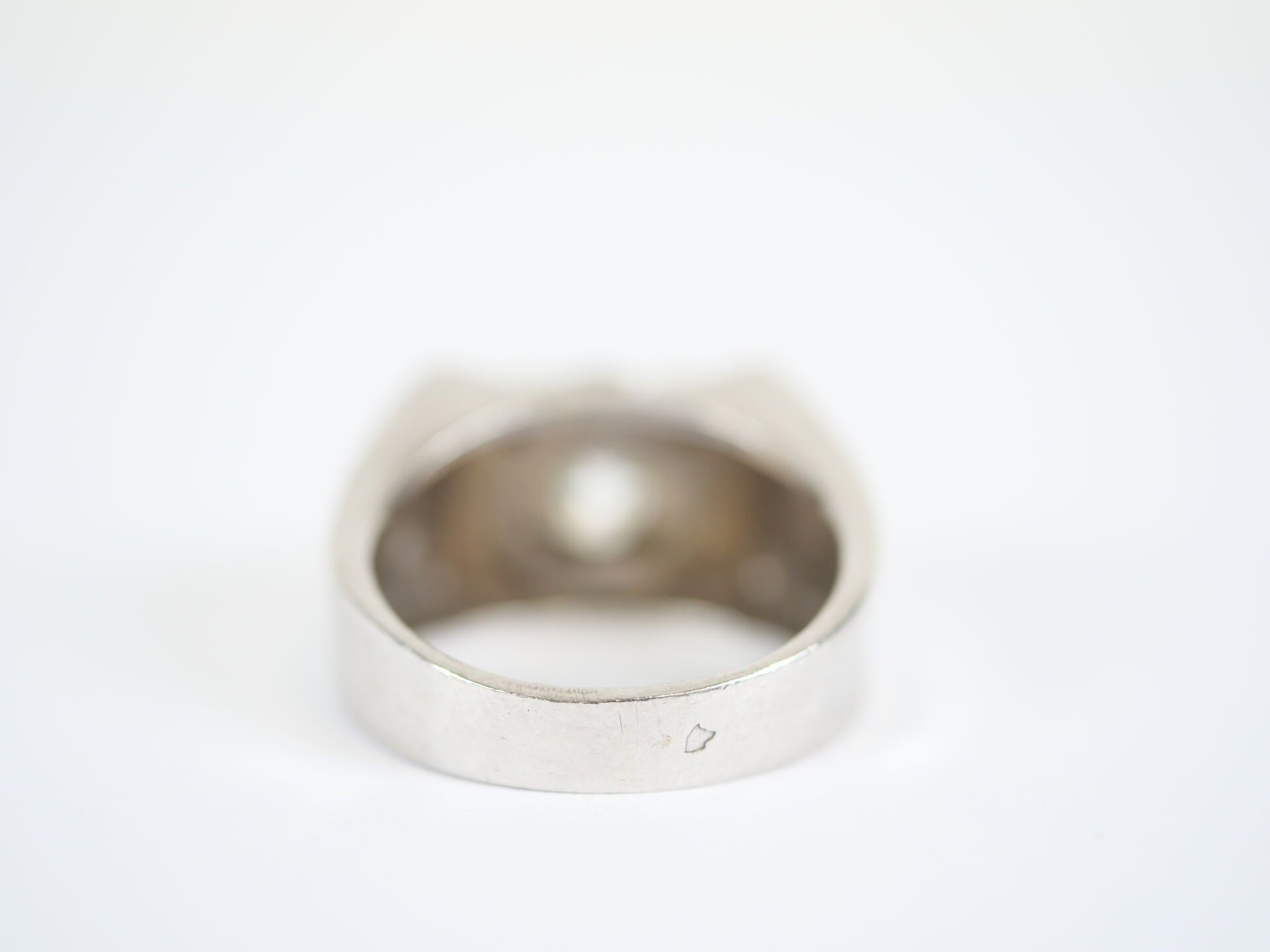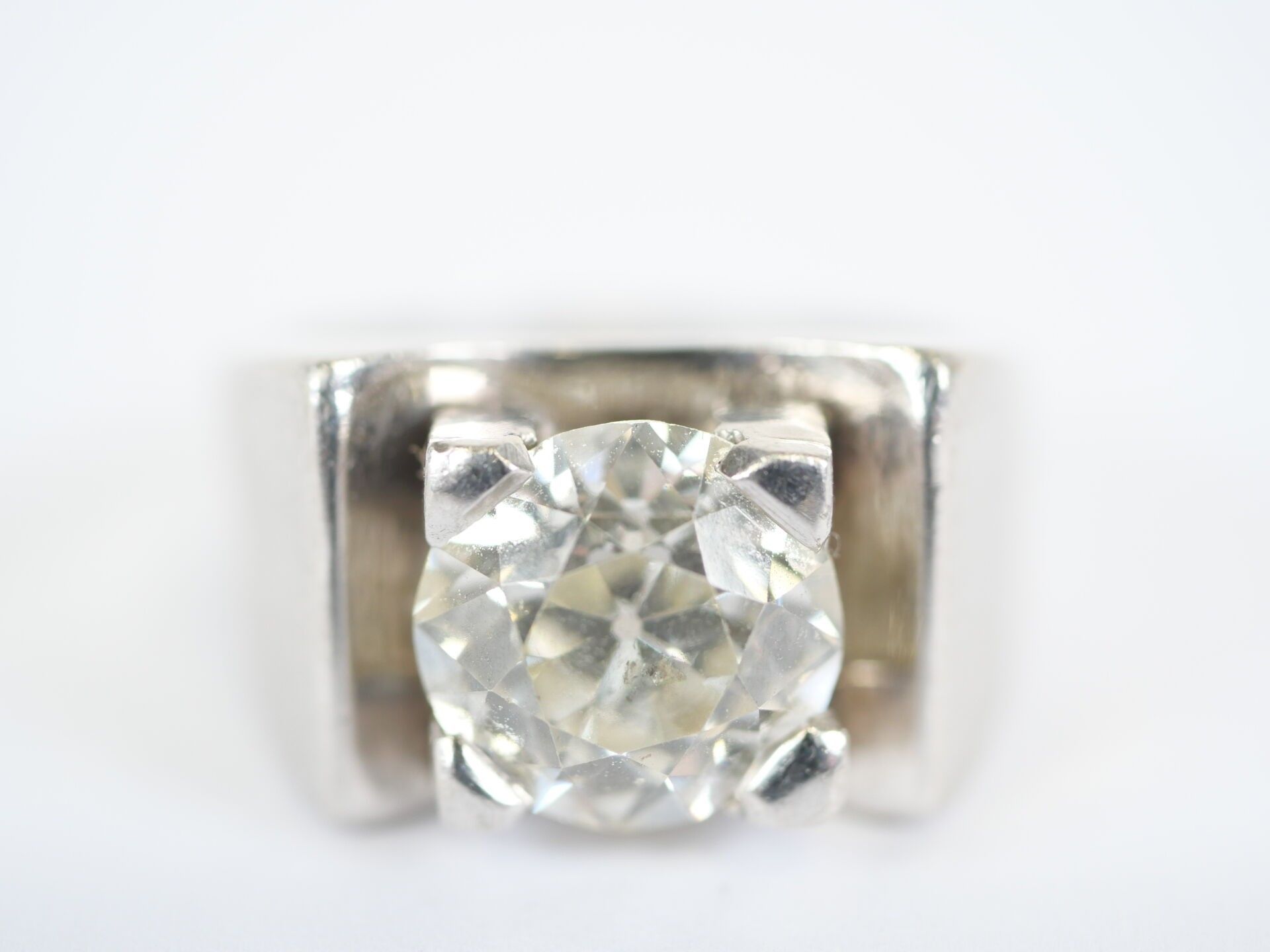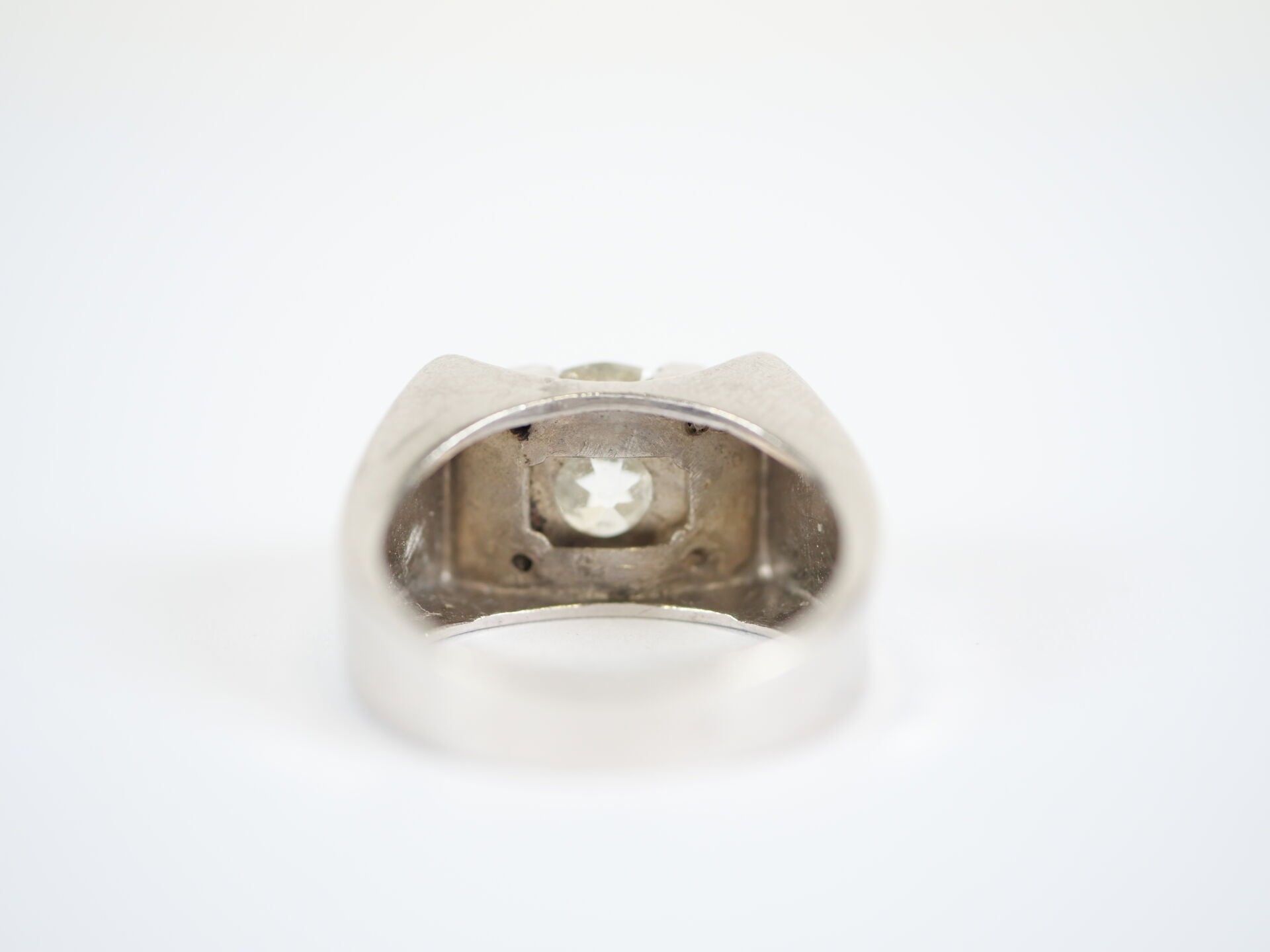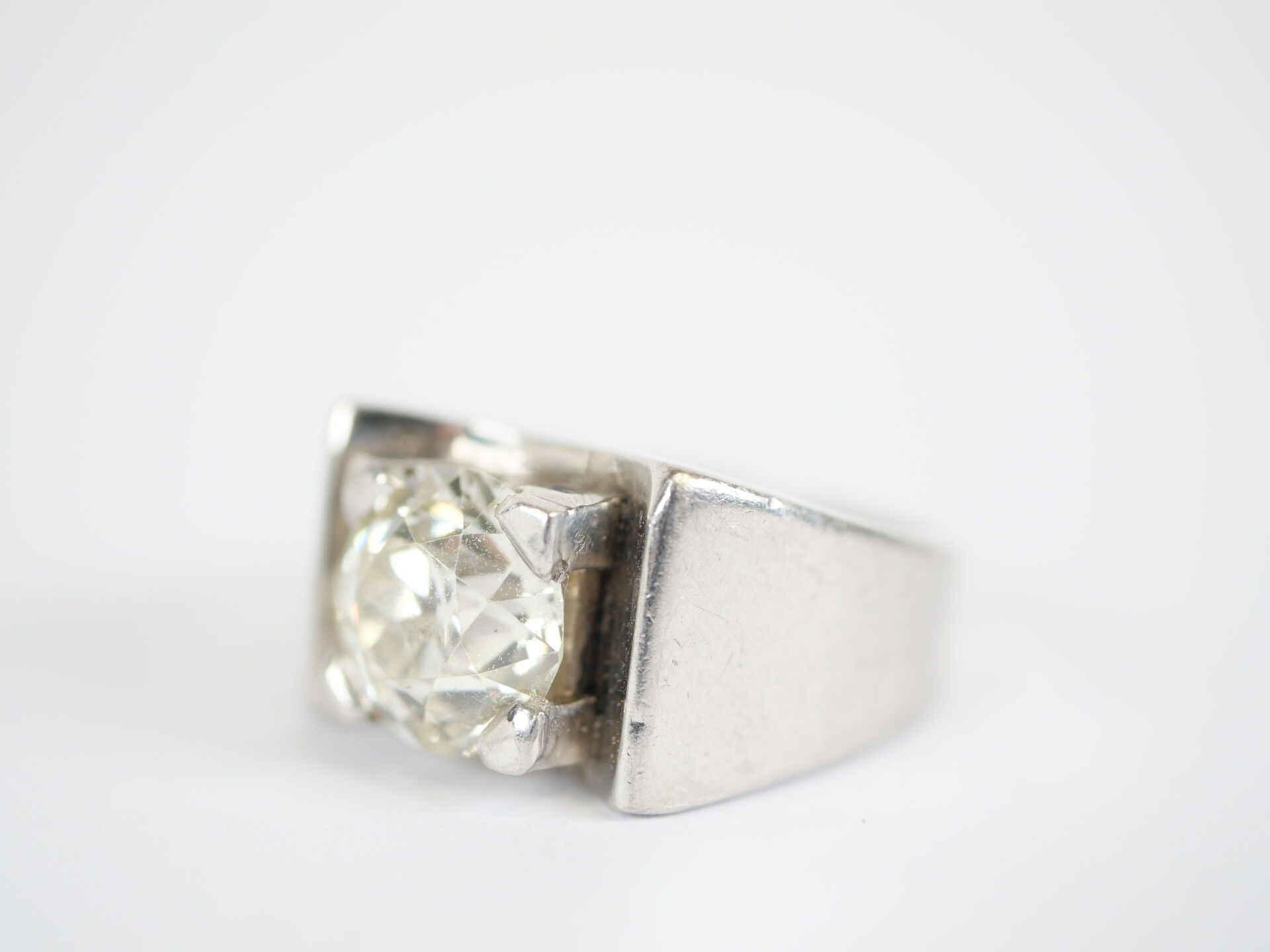 Important signet ring in platinum (850‰) centred with a round old-cut diamond, approximately 2.40/2.70 carats, mounted in a claw-set setting.