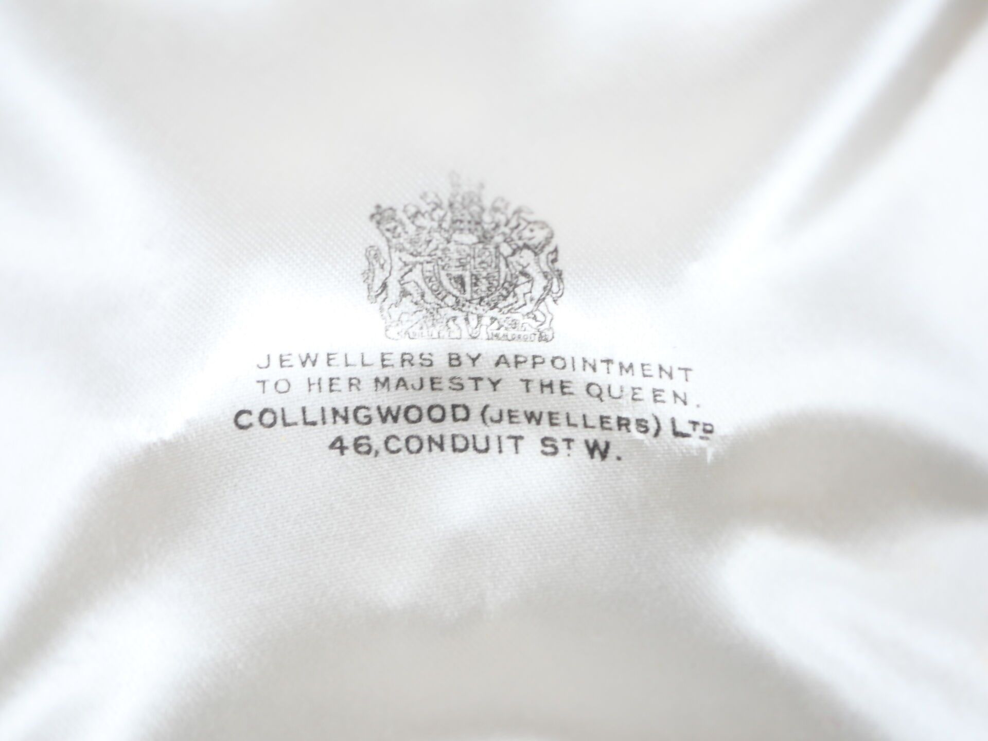 Presented in its original jewellery box inscribed "Jewellers by appointment to her Majesty The Queen, COLLINGWOOD (Jewellers) Ltd 46, Conduit St W".