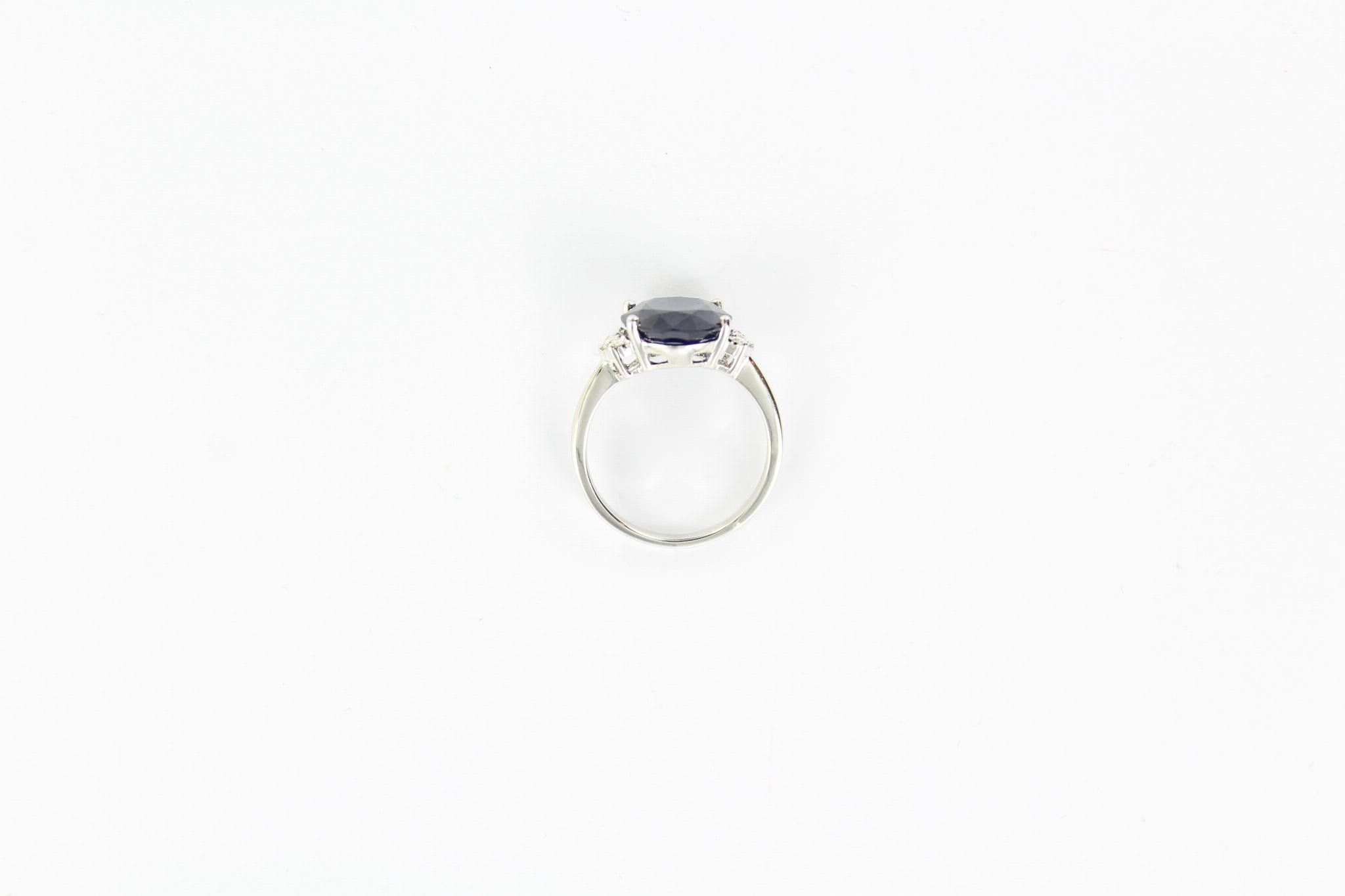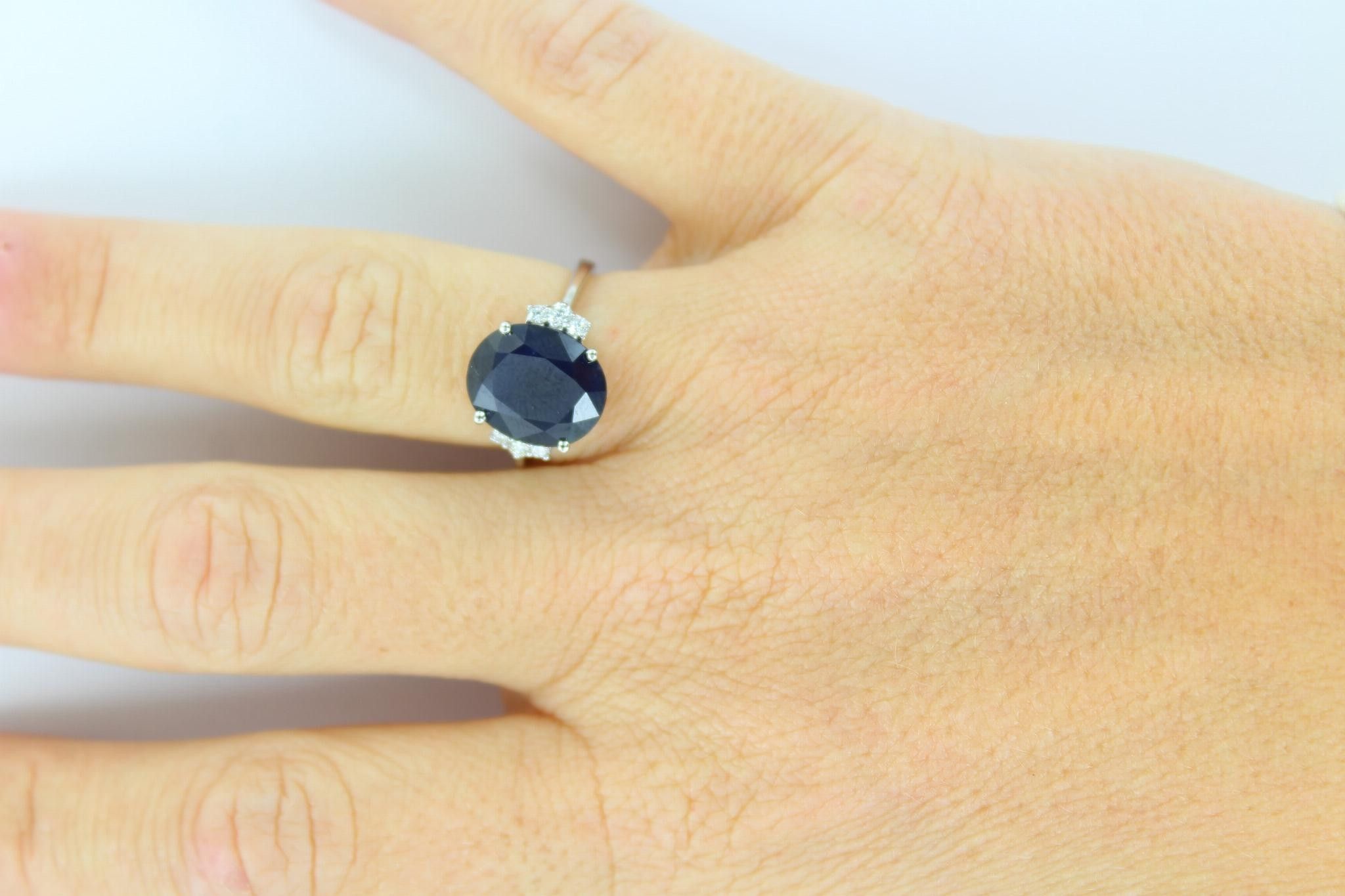 White gold ring set with a dark oval sapphire (12 x 10.5 mm)…