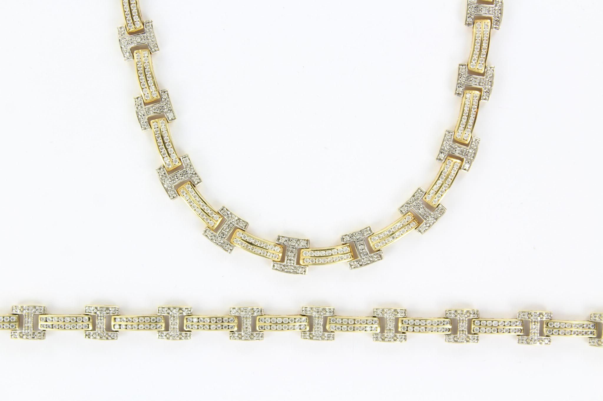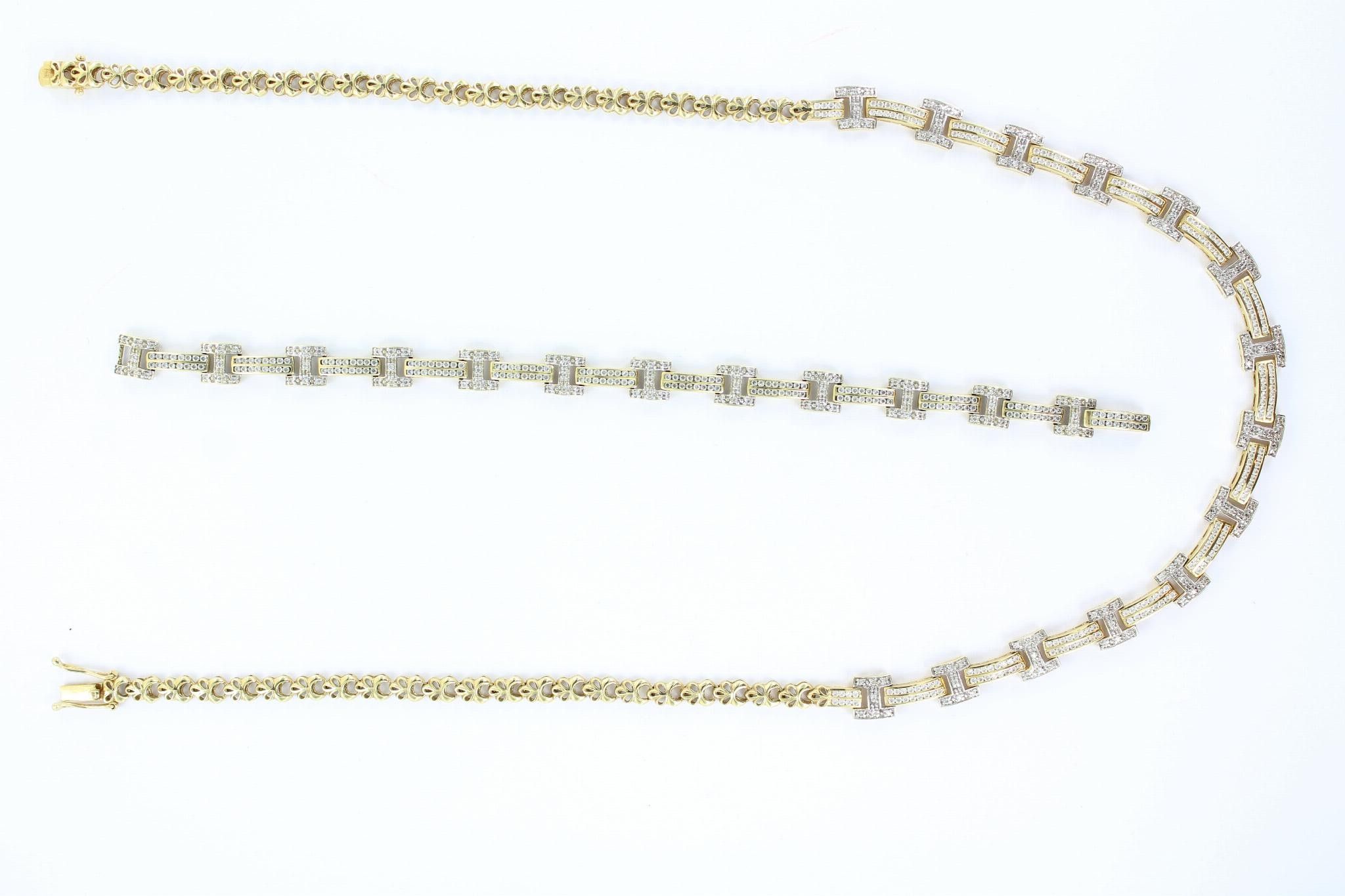 ELINI. Half-set comprising bracelet (Length: 18.5) and necklace (Length: 48) in yellow gold with H motifs embellished with imitation stones.