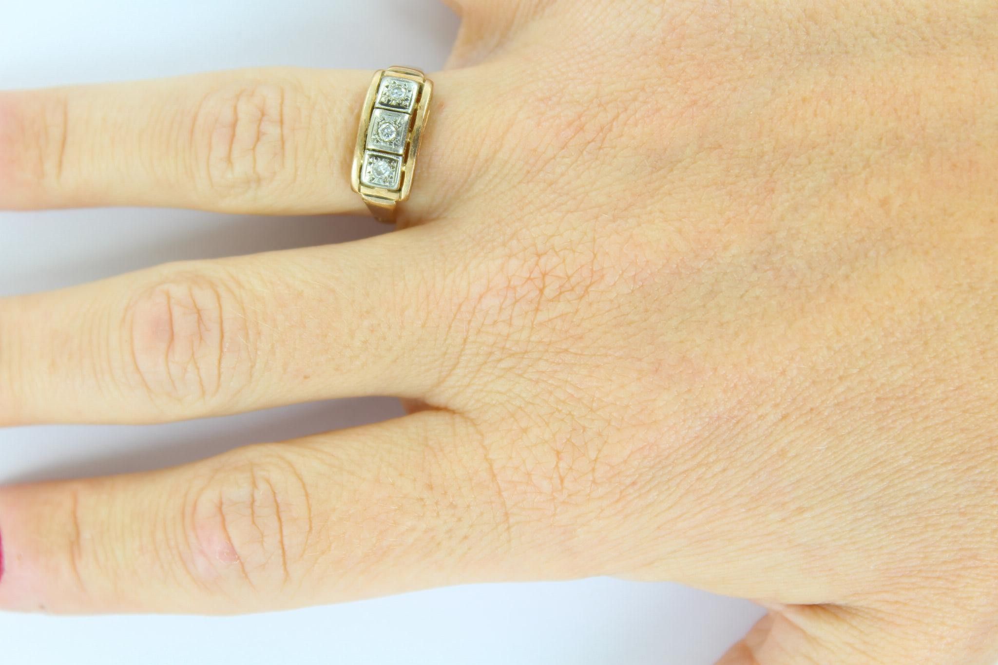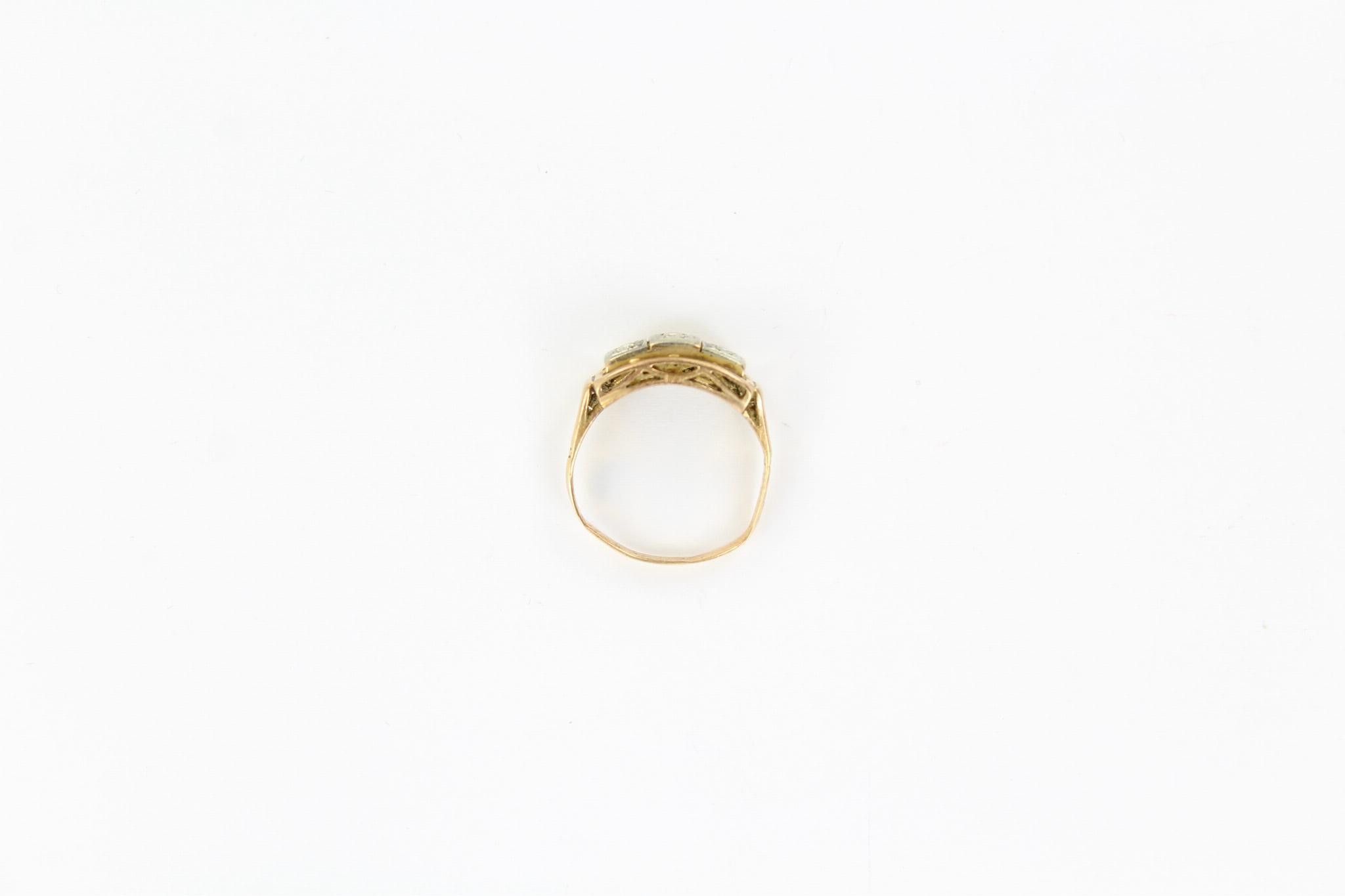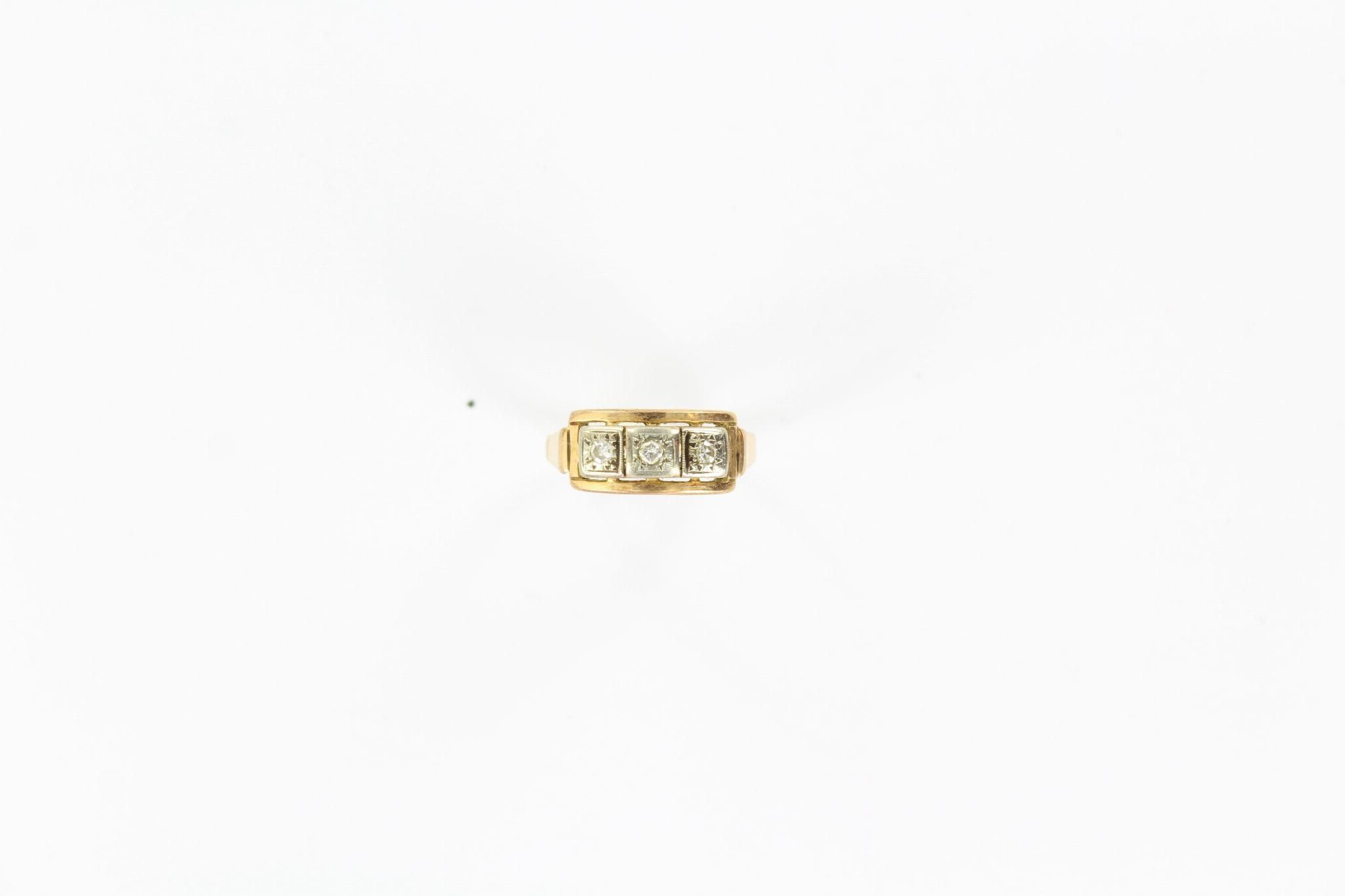 Yellow gold ring set with a line of 3 8/8-cut diamonds. TDD: 55
