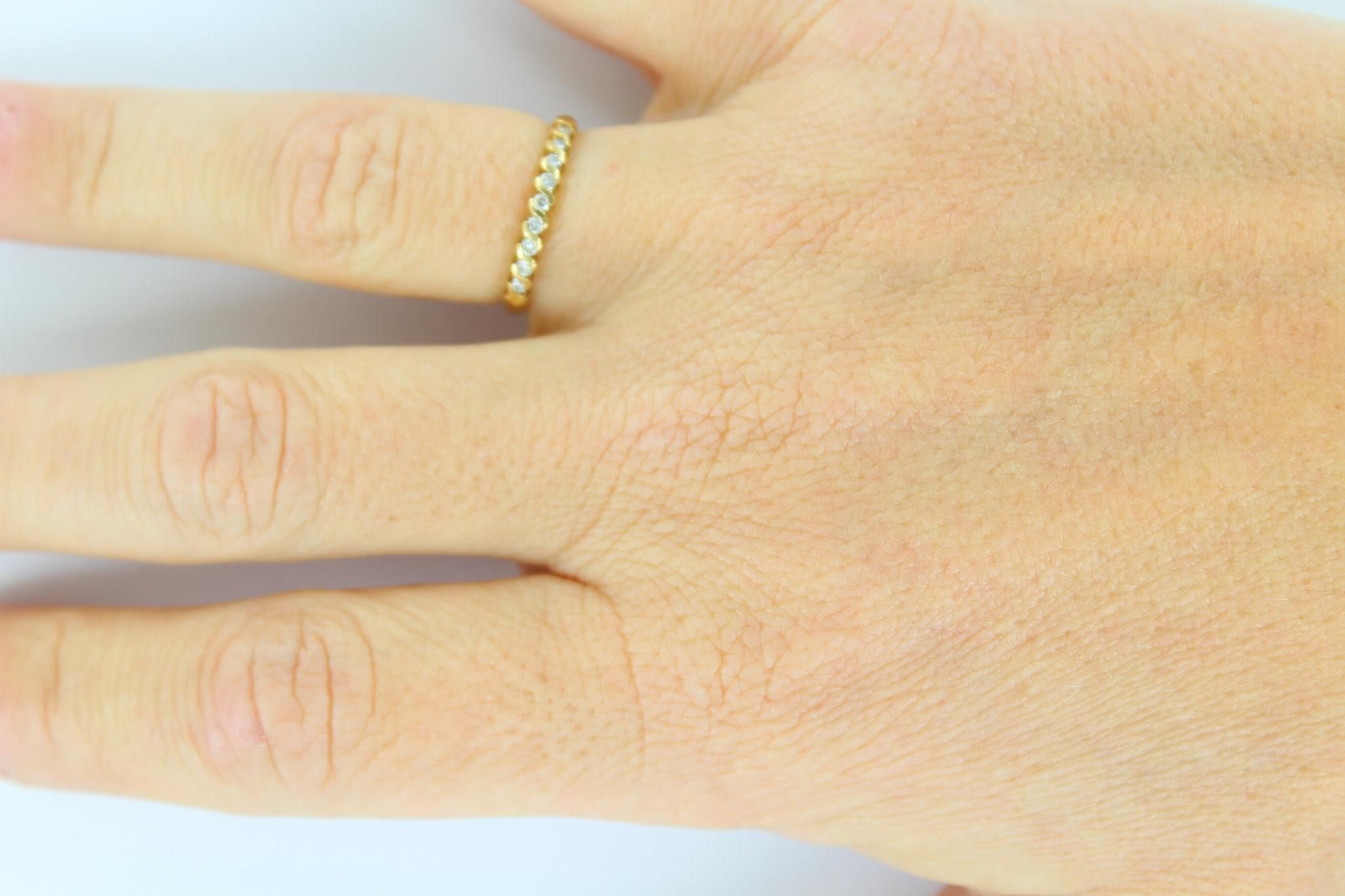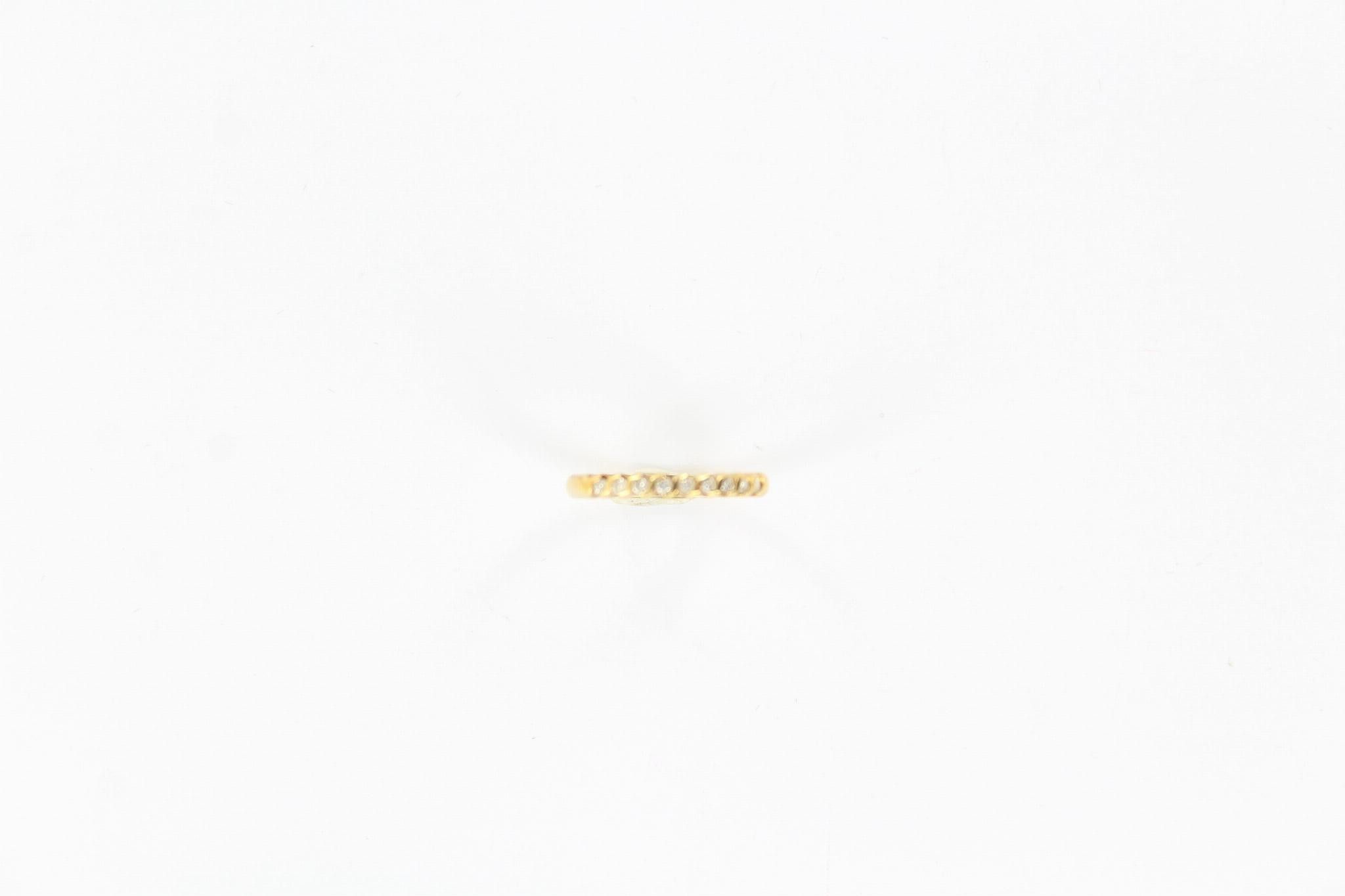 Half wedding ring in yellow gold set with a line of 9 diamonds, 0.01 ct. TDD : 51