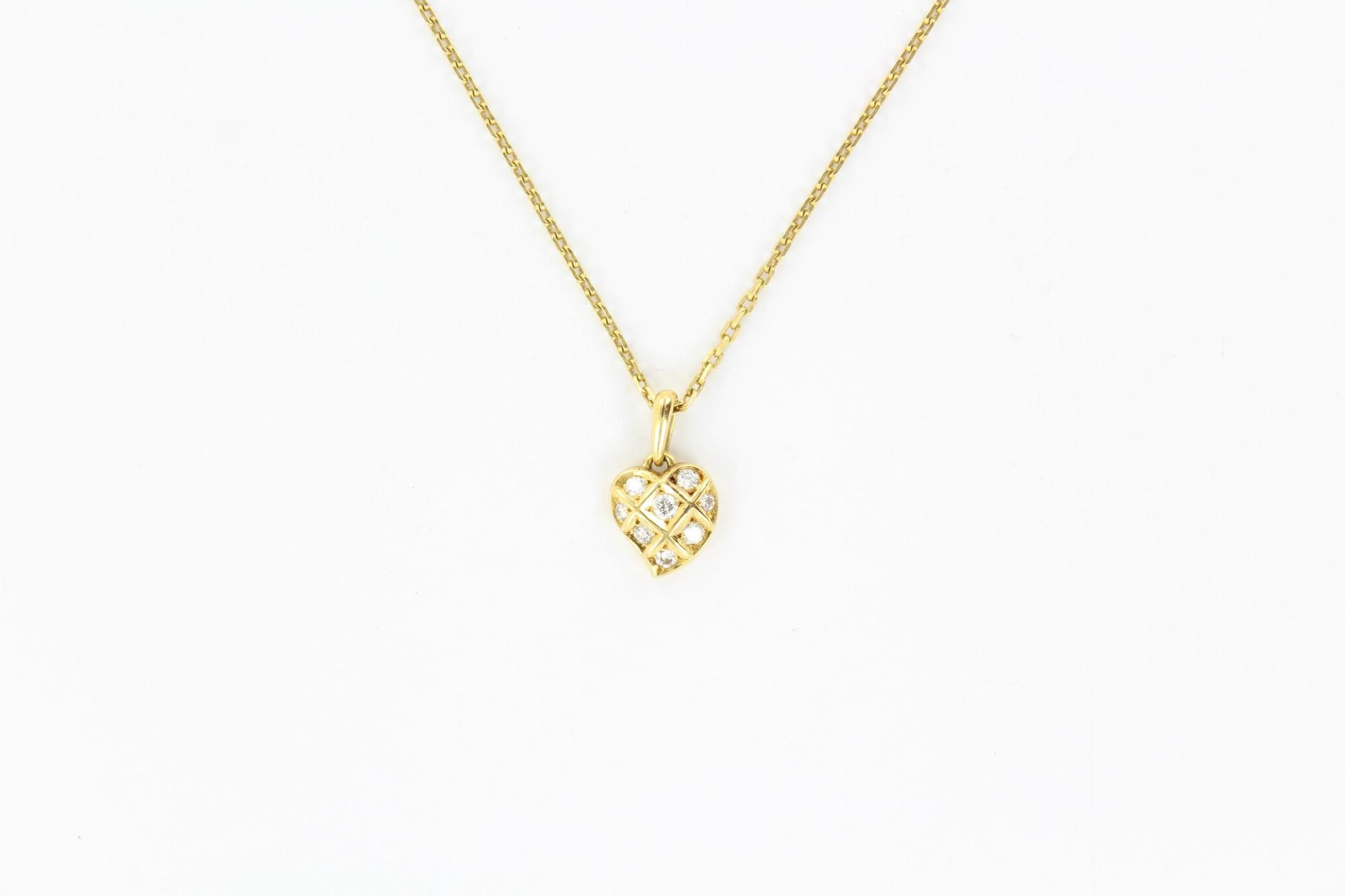CARTIER. Yellow gold neck chain (Length: 46) No. 221104 and heart pendant paved with 8 diamonds of 0.02 to 0.04 ct, No. 220185. In a pouch.