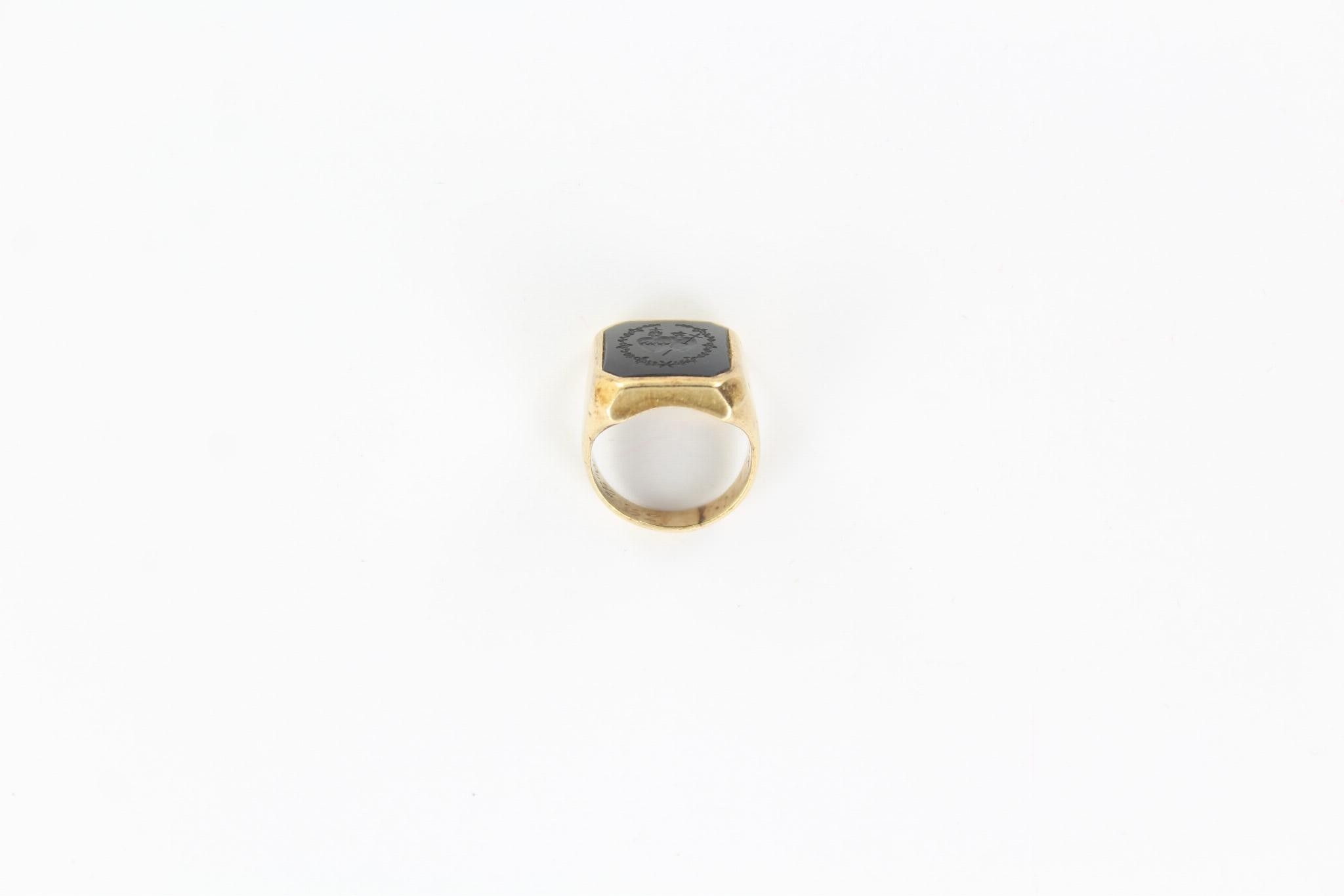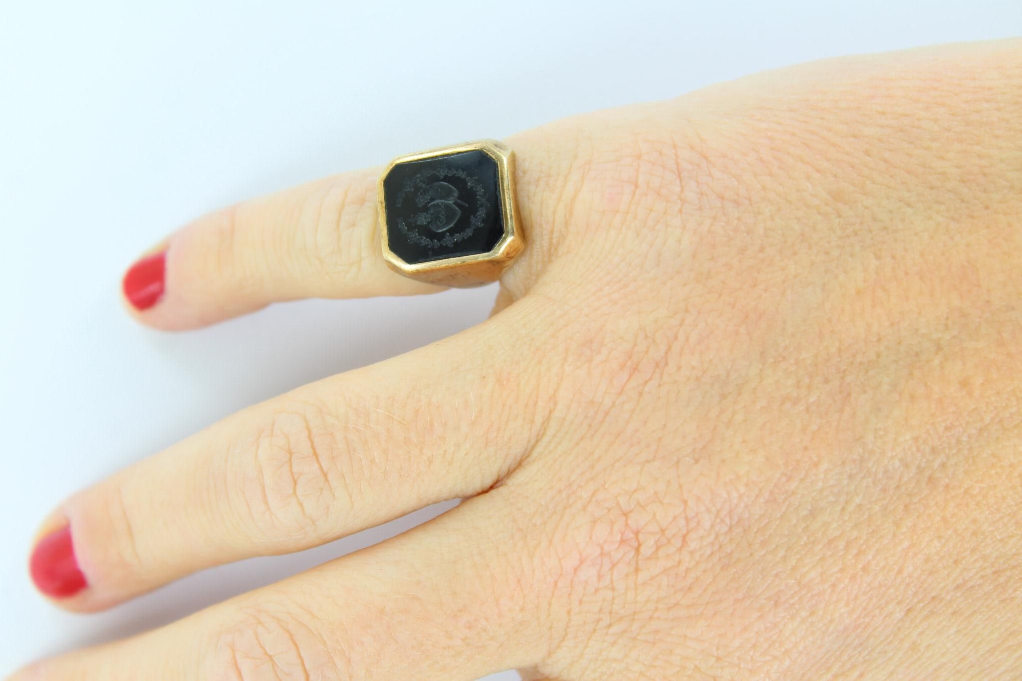 Chevalière in 10 k yellow gold set with an intaglio onyx pla…