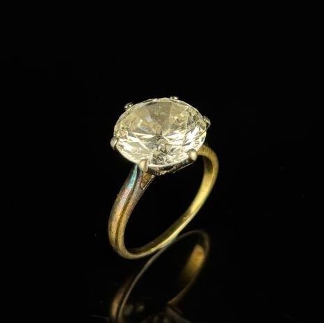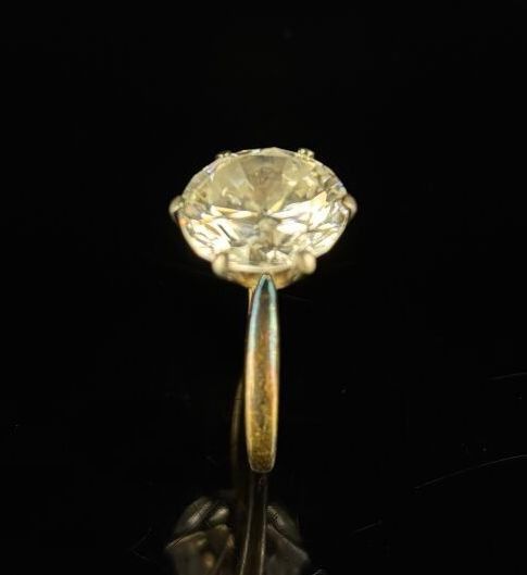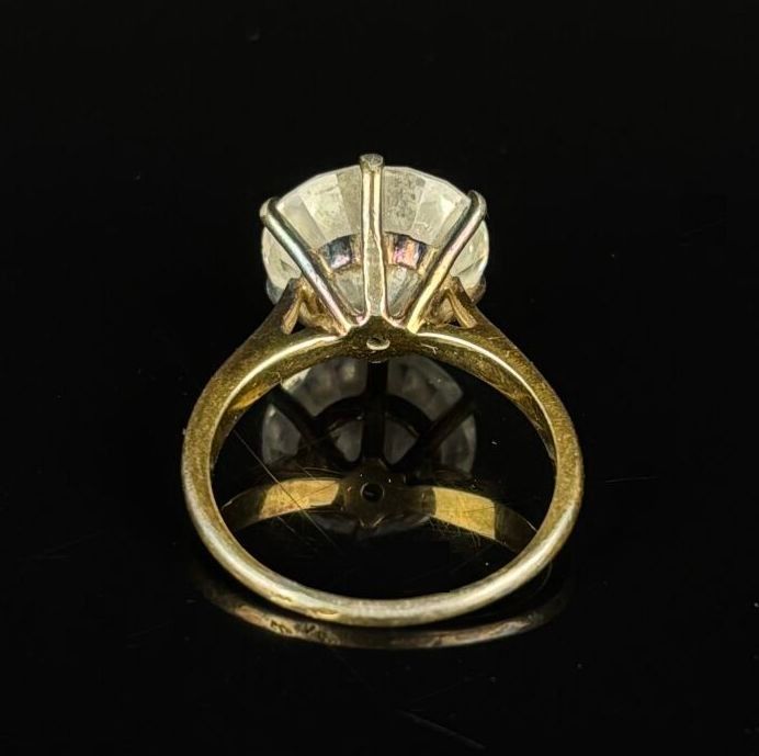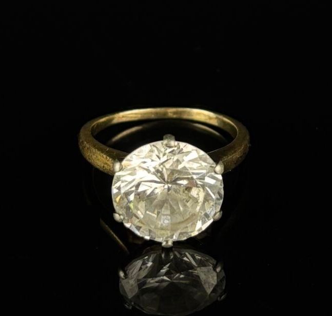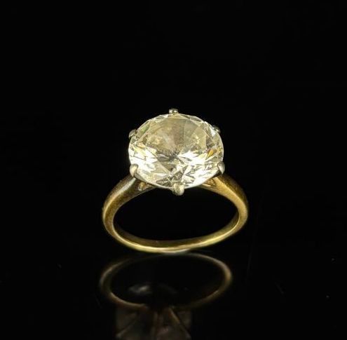 Silver and vermeil ring set with a large white stone imitating a diamond.