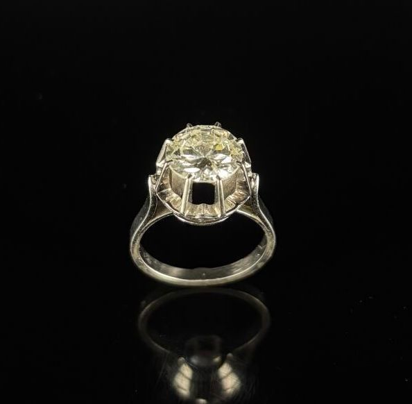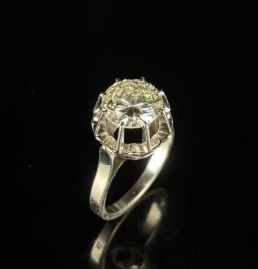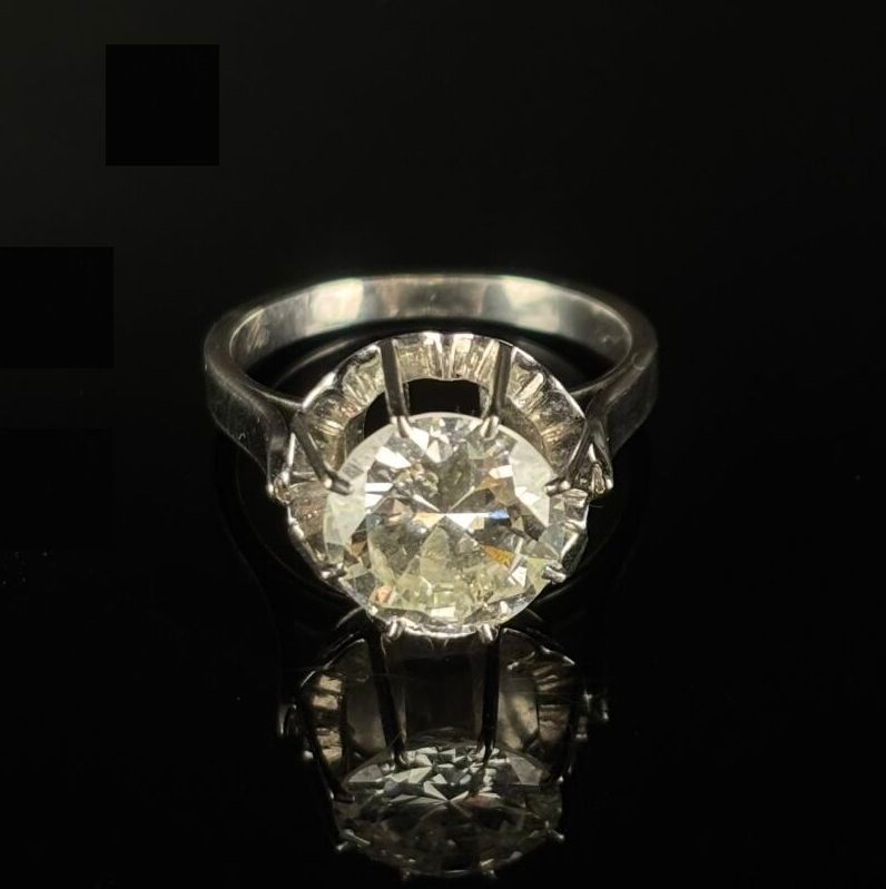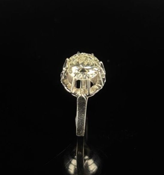 Solitaire ring in white gold, set with a round brilliant diamond weighing approximately 2.5 carats.
