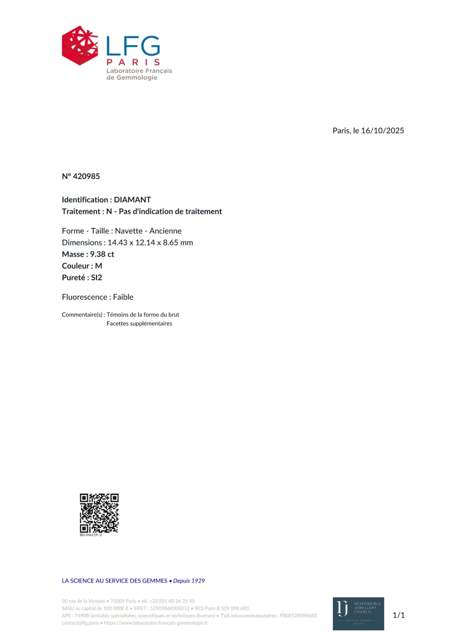 With preliminary examination by the Laboratoire Français de Gemmologie dated 16/10/2025 specifying :