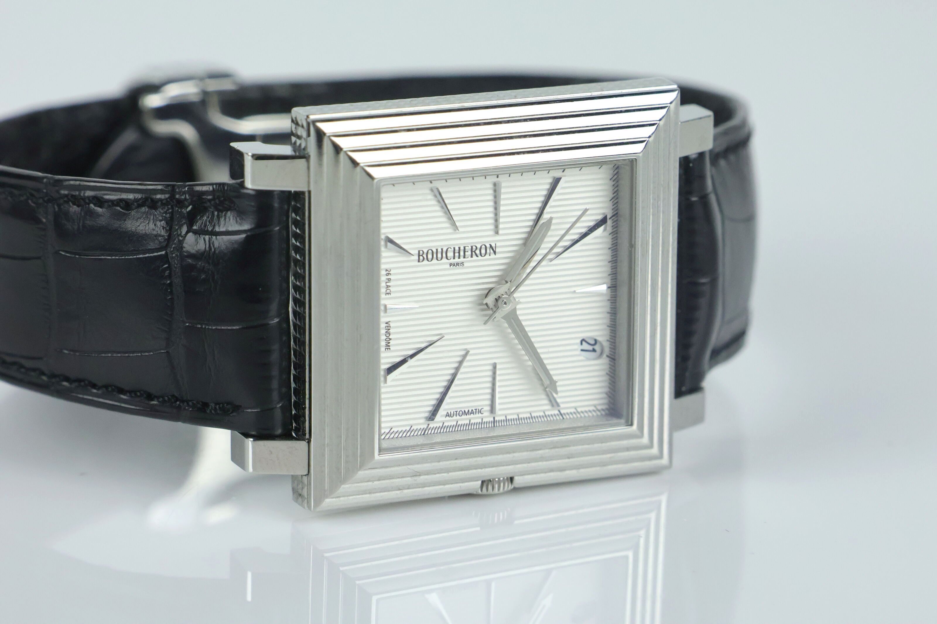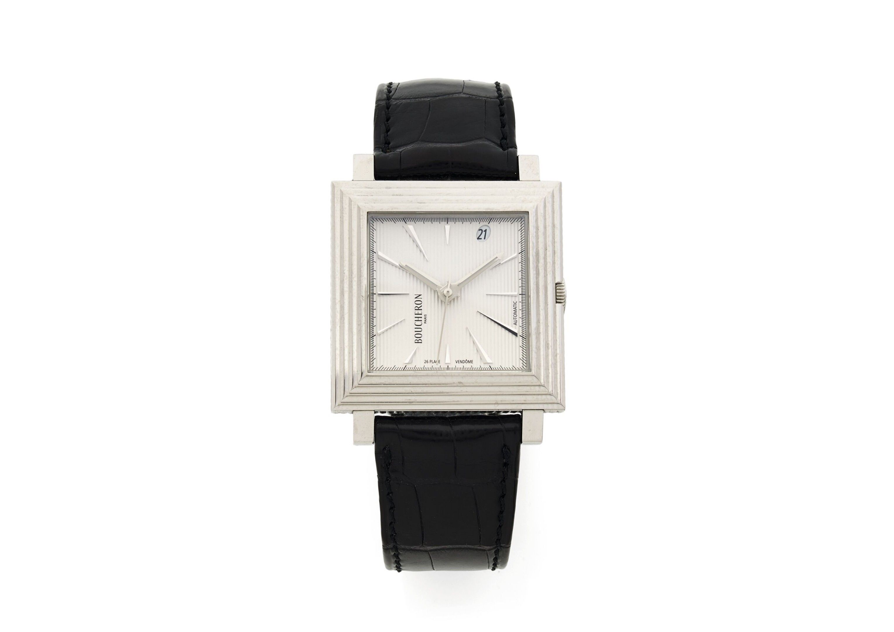 Operational movement at the time of catalogue writing. Very few signs of use. Dial in good condition. Winding crown engraved "26 Place Vendôme". Signed crocodile strap in good condition. Servicing recommended. Please note that all watches are sold as is. No warranty on function. The watches have been opened to identify the type and quality of movement, including water resistant watches, so the buyer is advised to consult a watchmaker to review the water resistance of the watch.