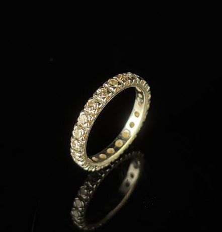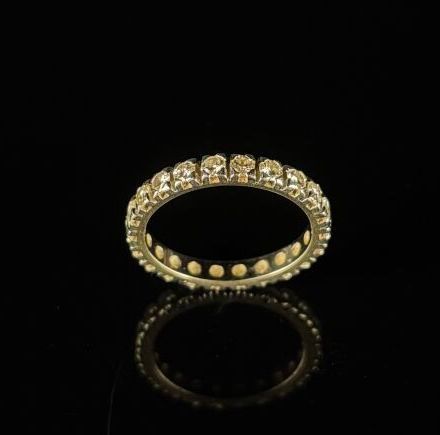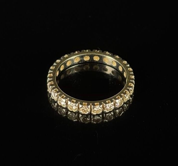 American wedding band in white gold set with round brilliant-cut diamonds.