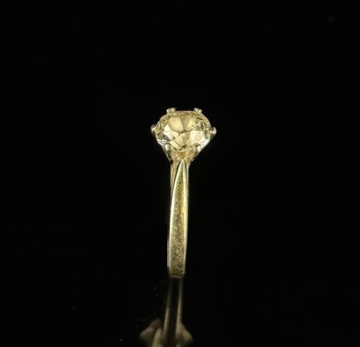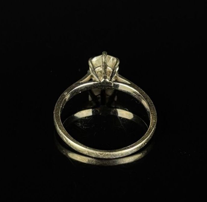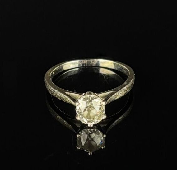 Solitaire ring in white gold set with a round, slightly cushion-shaped old-cut diamond weighing approx. 0.75 carat.