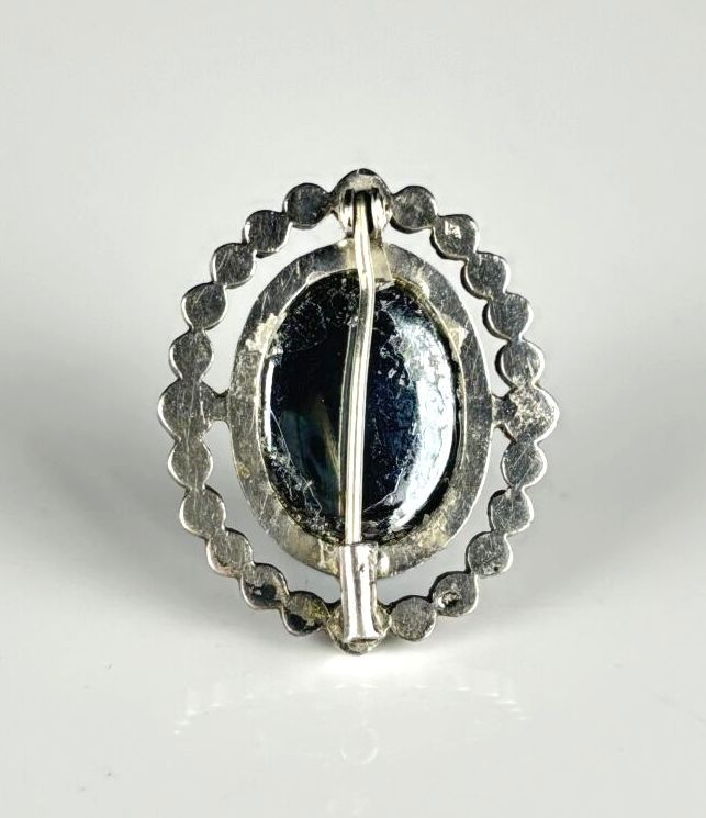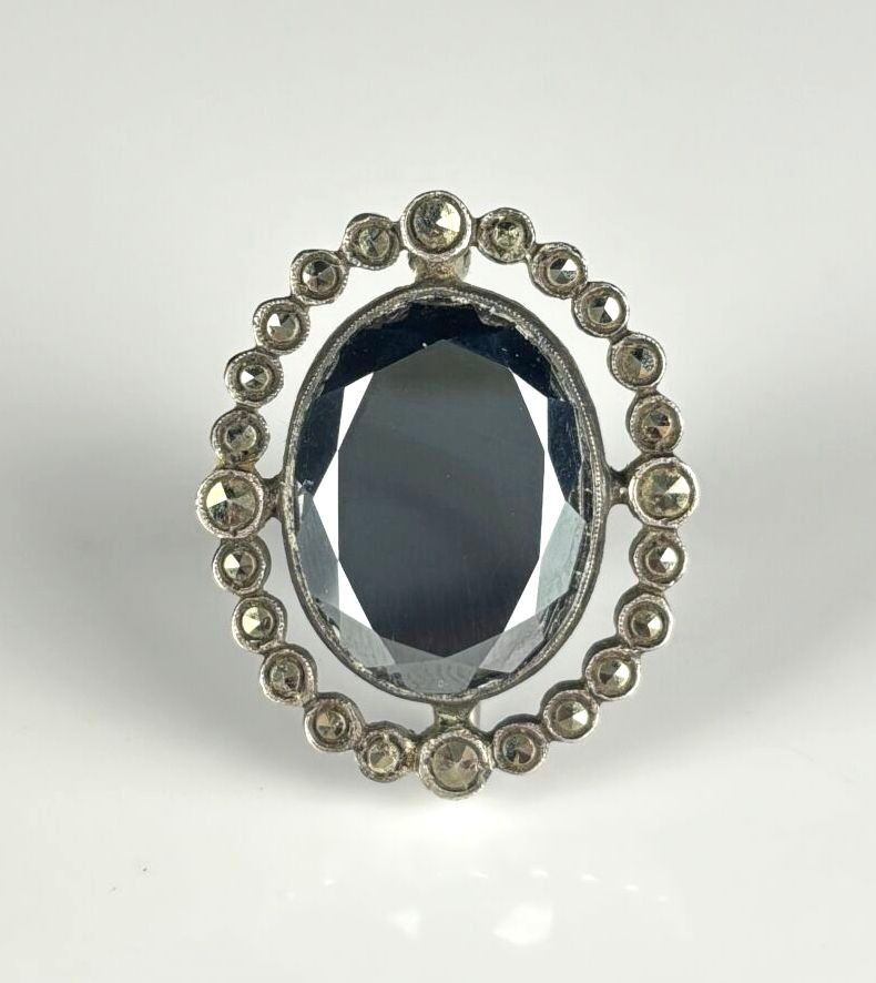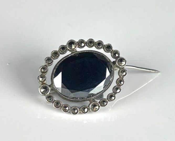 Silver brooch set with a central faceted haematite and Rhinestones.