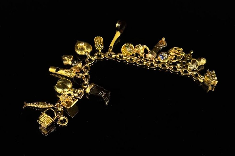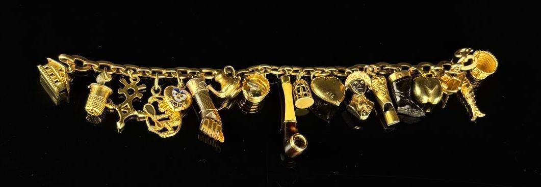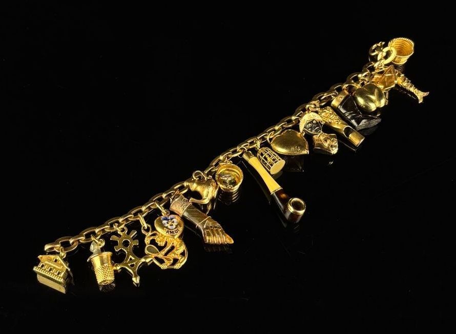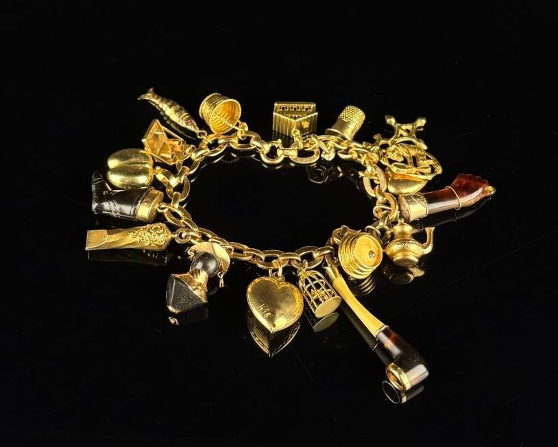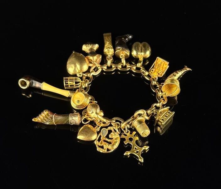 Yellow gold bracelet with multiple pendants, reminiscent of …