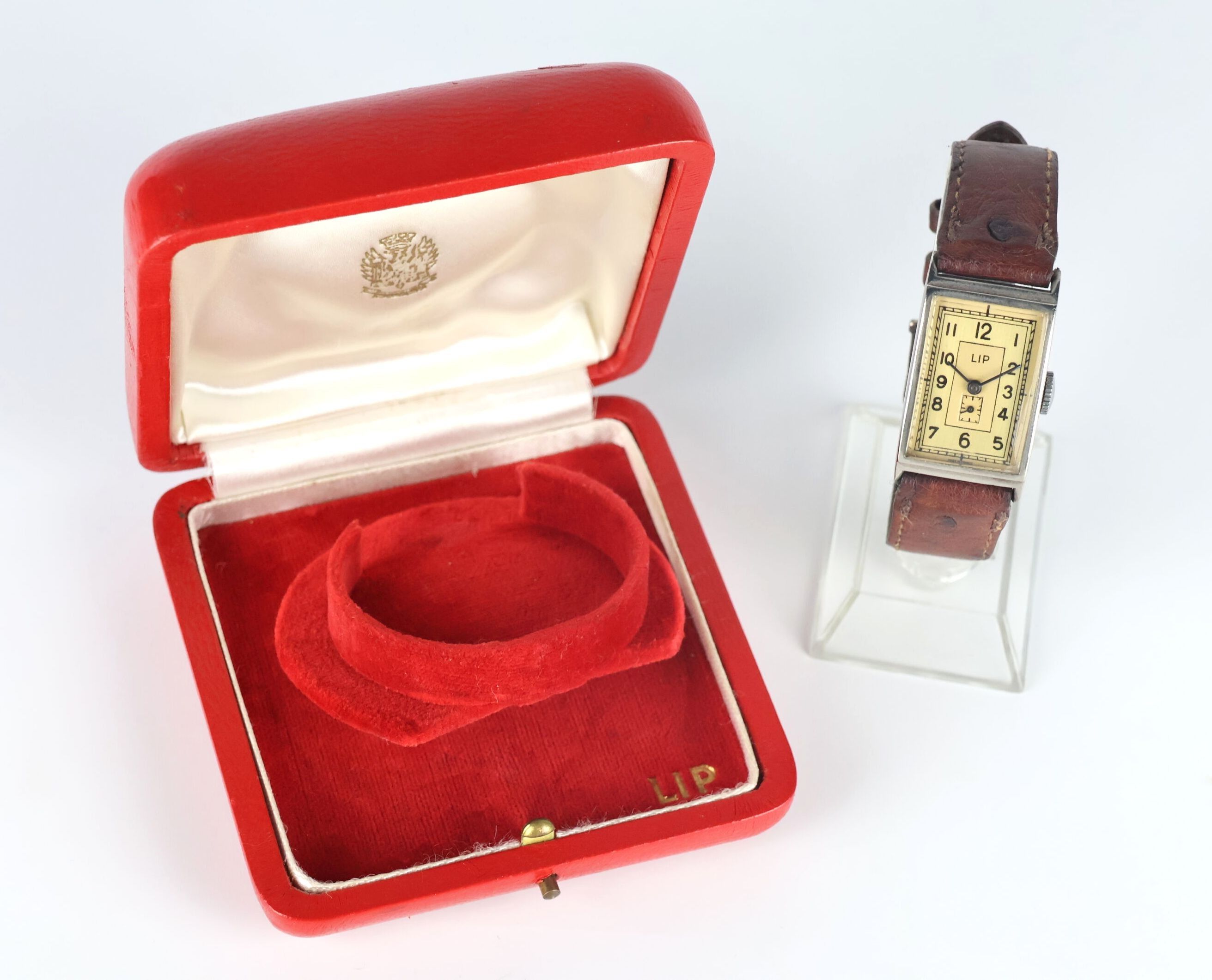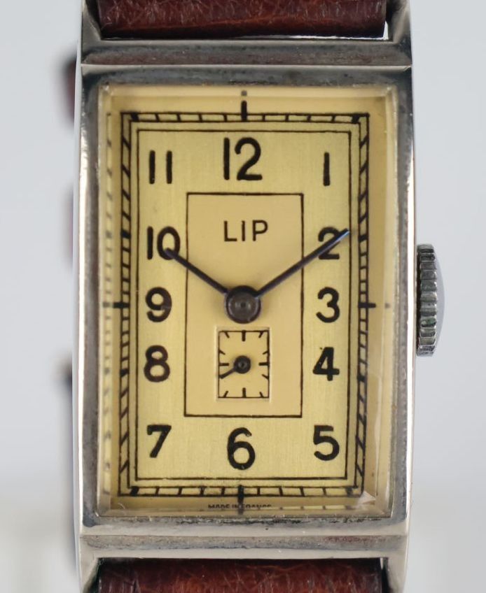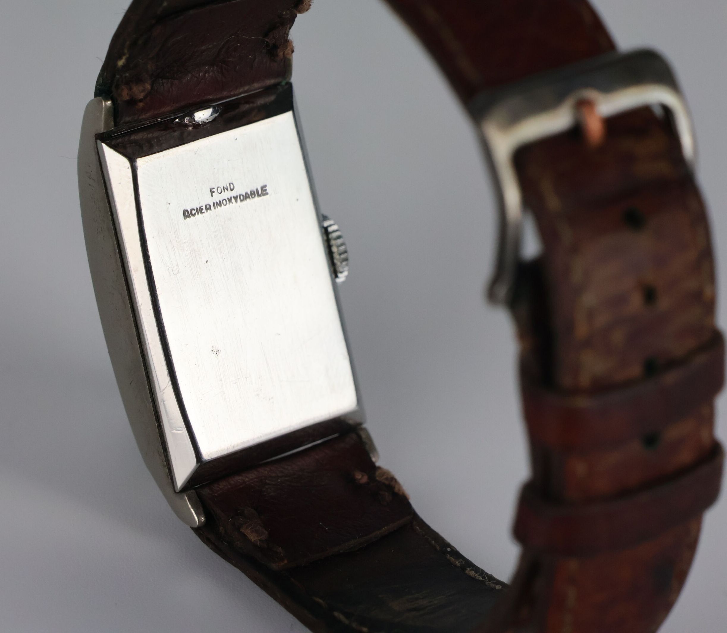 Dial: cream "MADE IN FRANCE", painted hour-markers, painted minute track, blued steel hands, small seconds at 6 o'clock, signed.