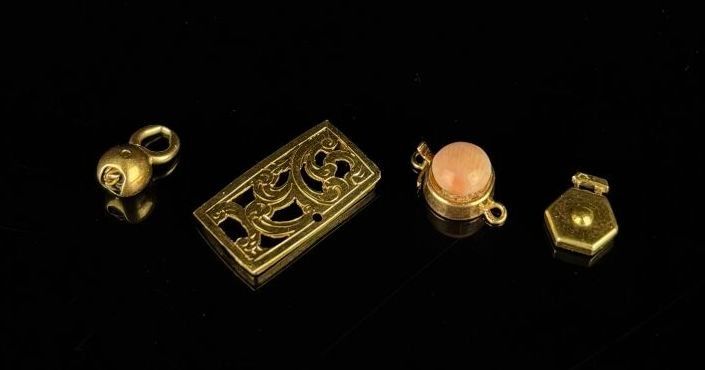 Reunion of gold clasps. One set with an angel skin coral pea…