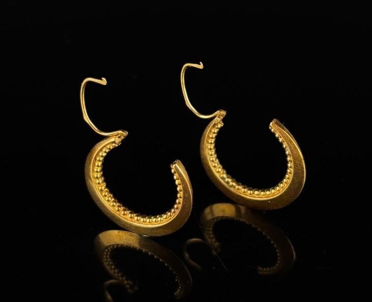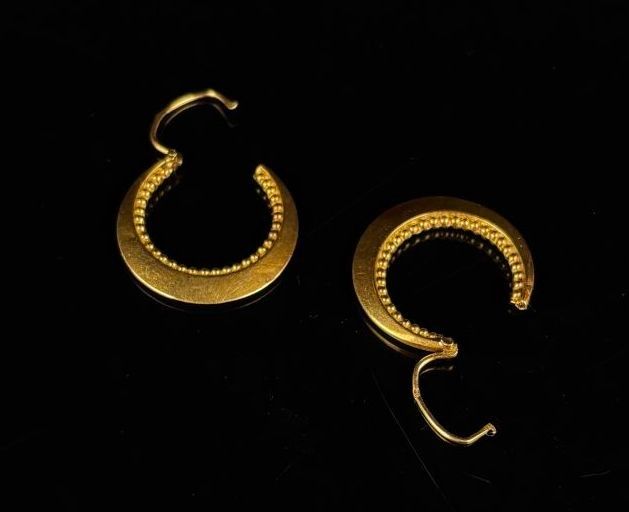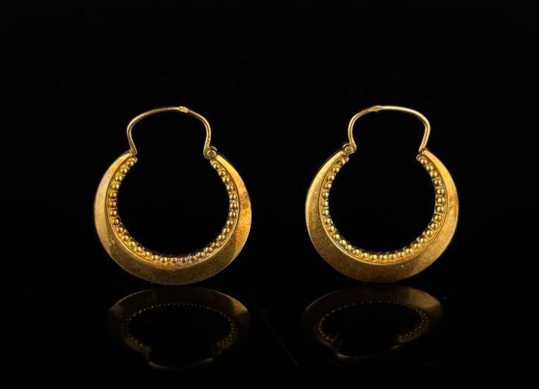Pair of rose gold fishhook earrings decorated with rows of p…