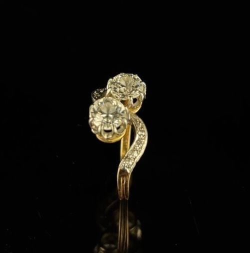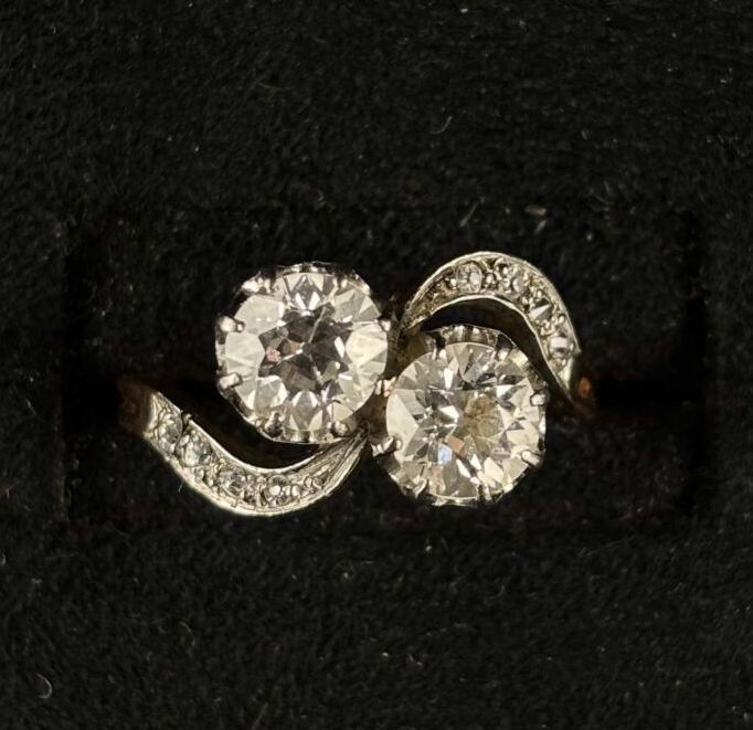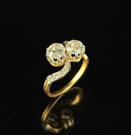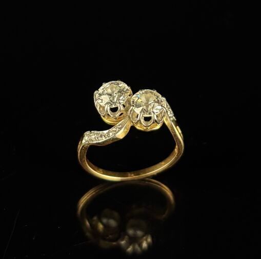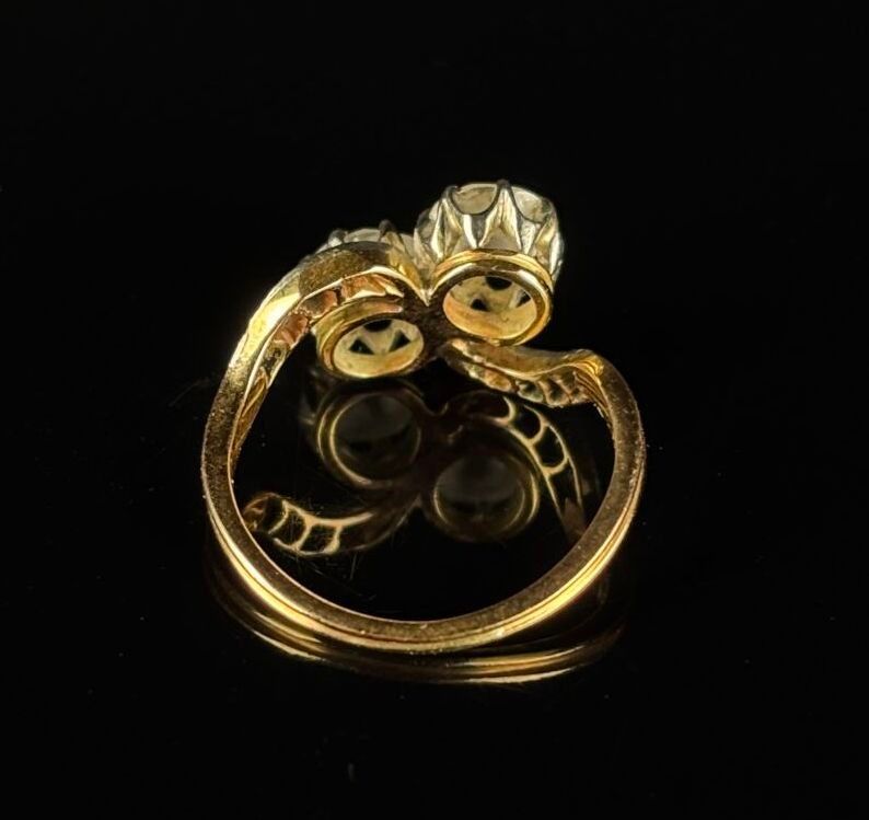 Toi et Moi ring in gold set with two round old-cut diamonds weighing approximately 0.60 carat each.