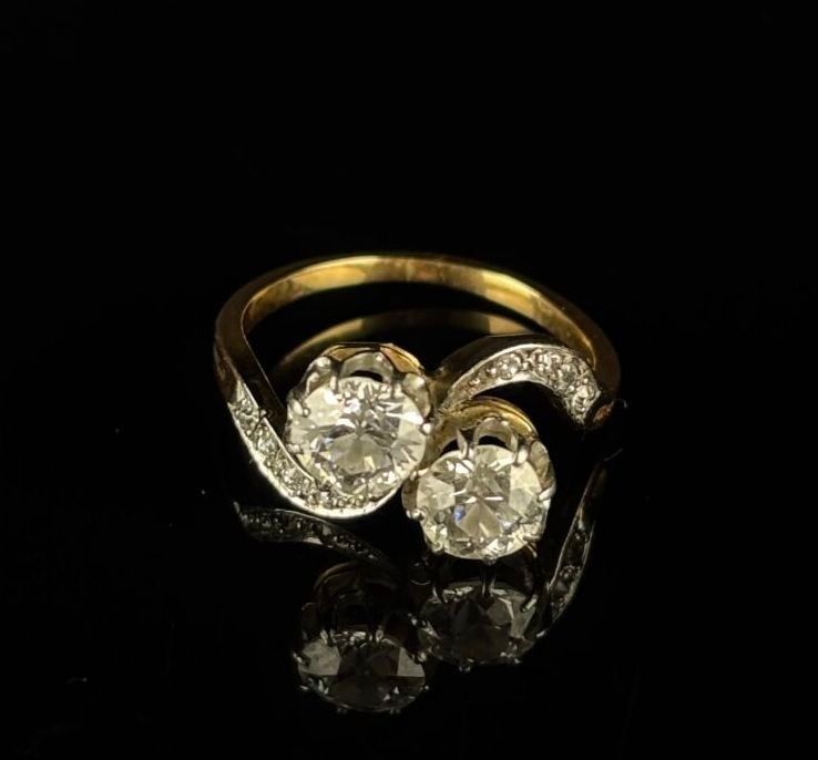 Toi et Moi ring in gold set with two round old-cut diamonds …