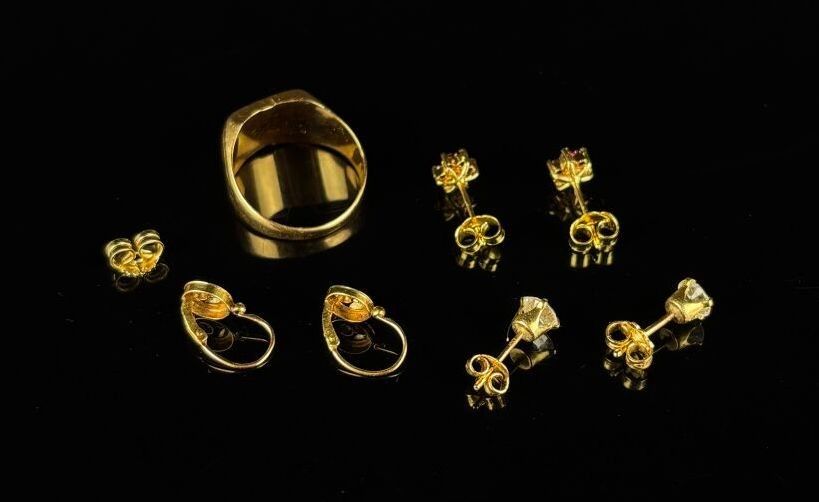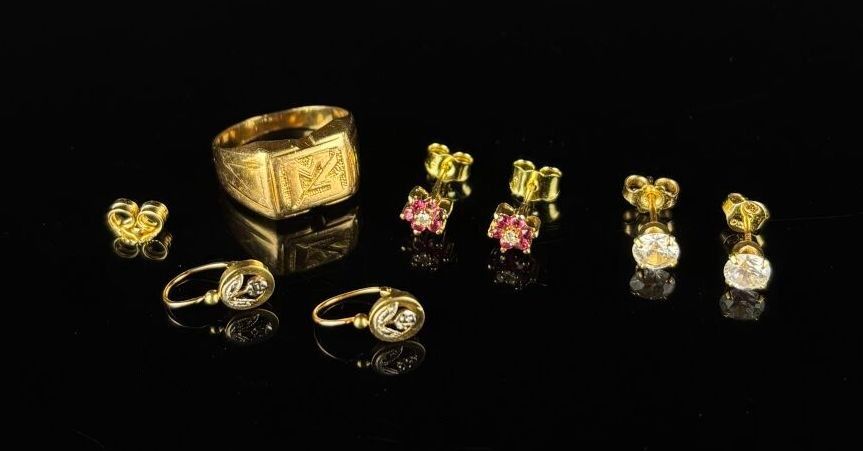 Reunion of gold jewellery comprising :