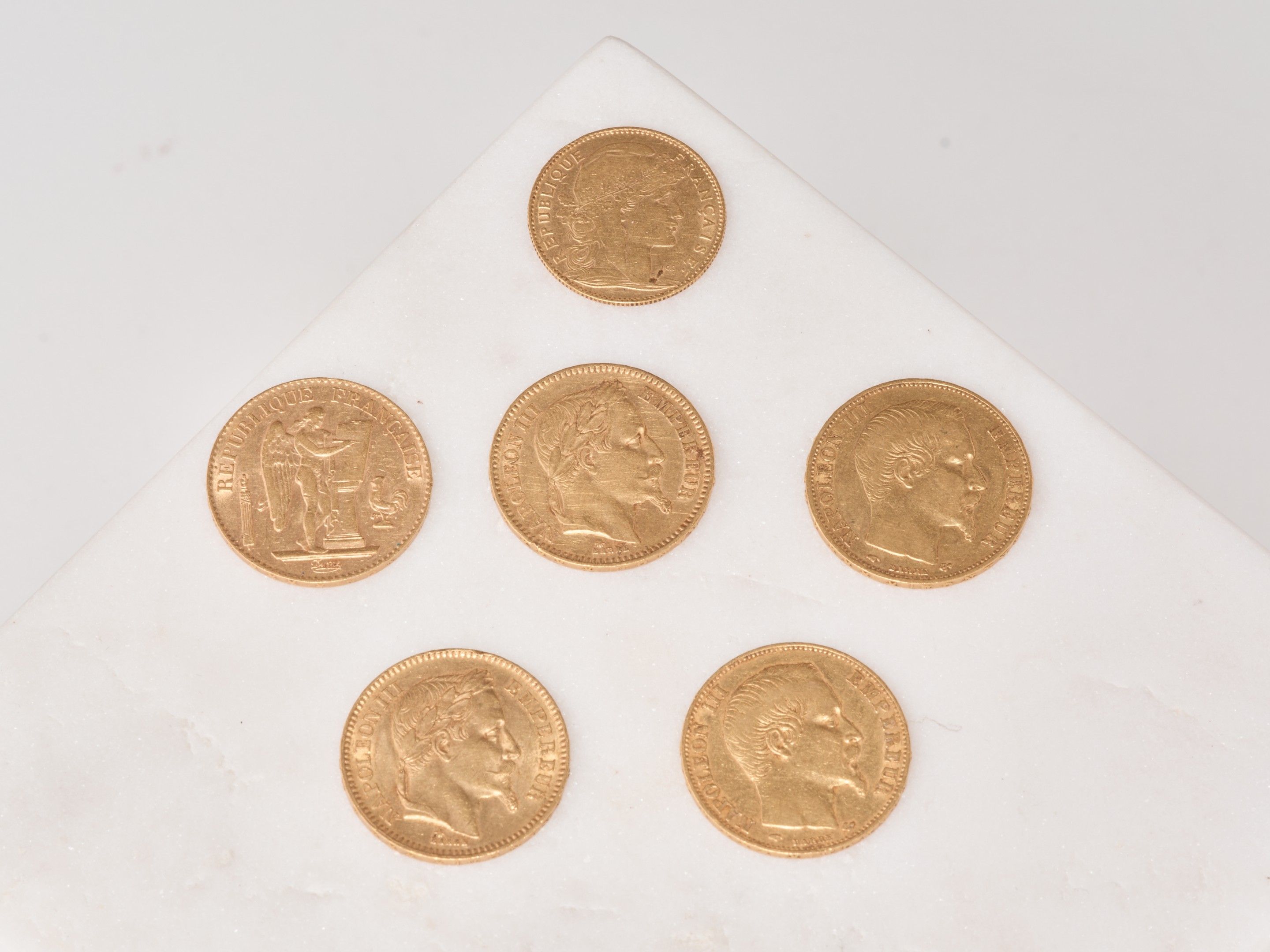 Lot of 6 yellow gold coins including 5 x 20 francs and 1 x 10 francs :