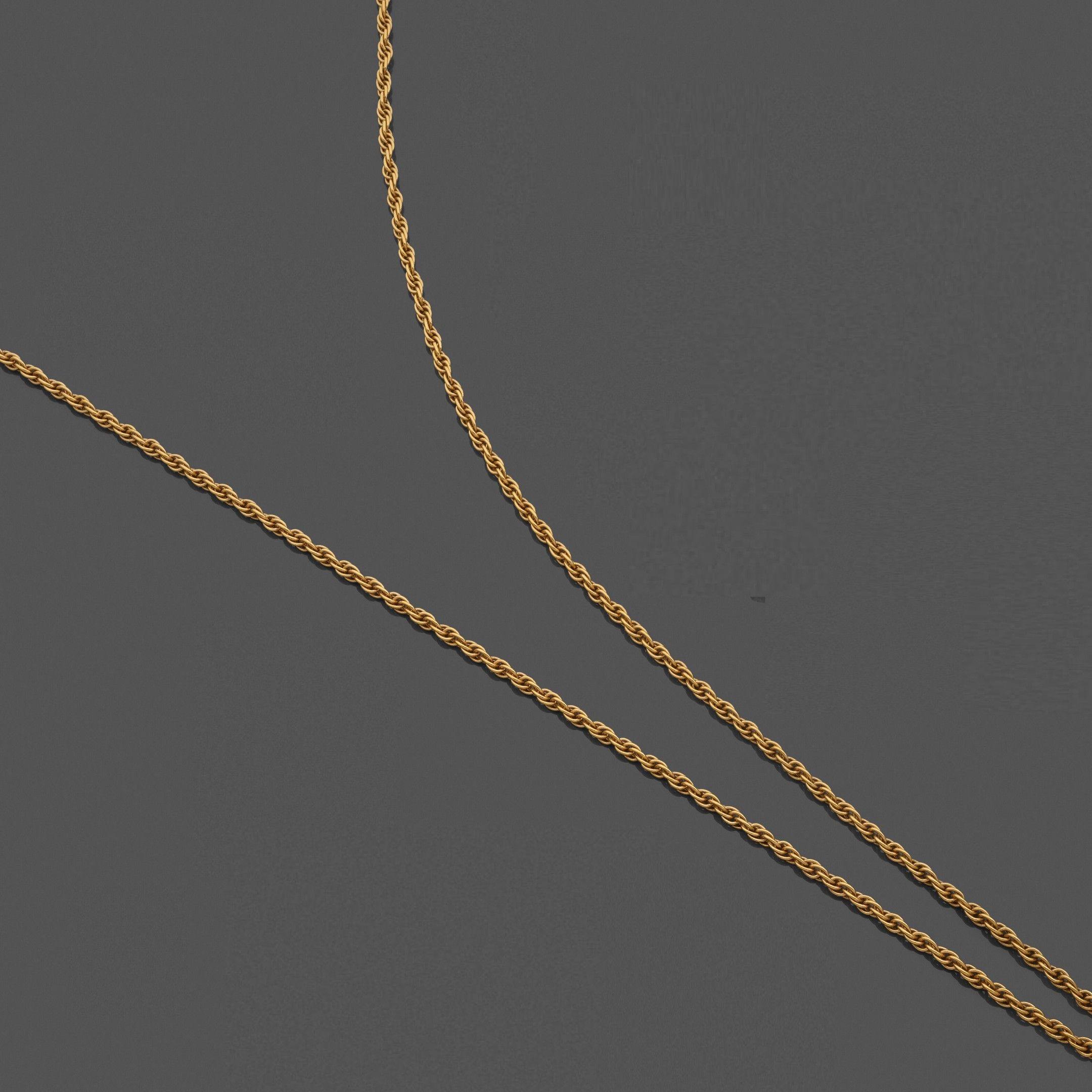 Articulated long necklace in 750 thousandths yellow gold, with interlaced oval links. (Worn). Length : 71.5 cm Gross weight: 22.8 g