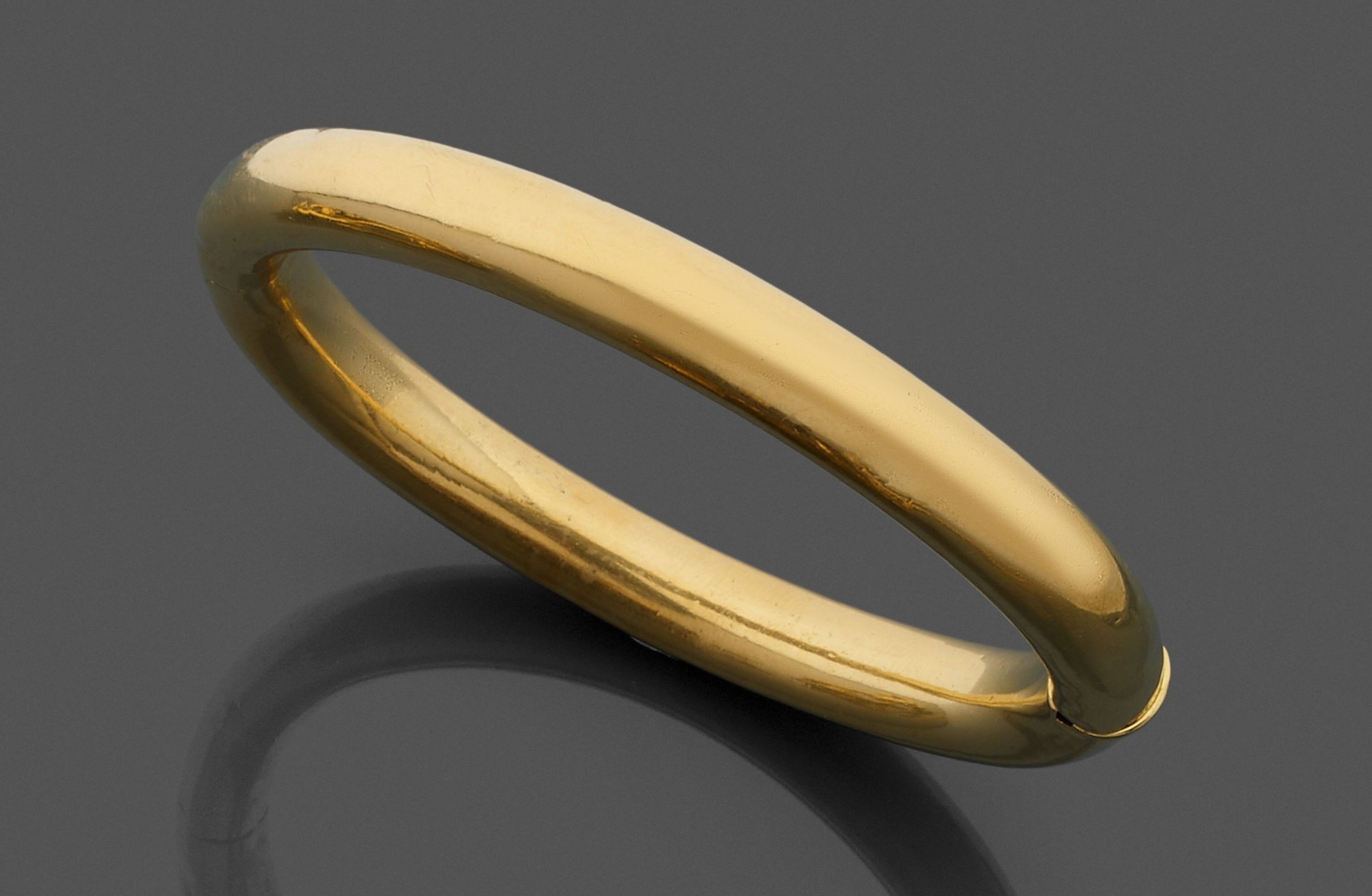 Rigid, opening bracelet in plain 750 thousandths yellow gold…
