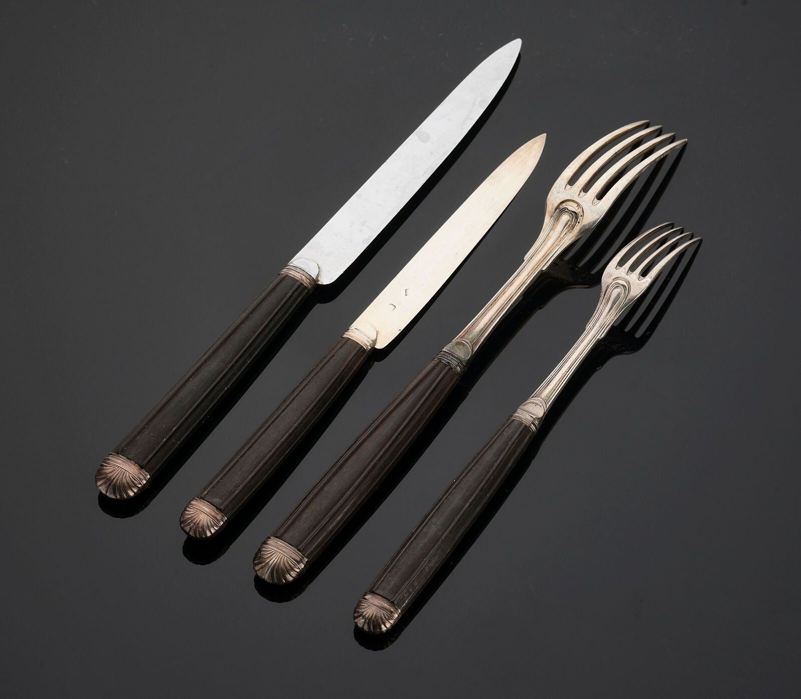 Maison CARDEILHAC - Set of silver cutlery (925 thousandths), the ebony handles decorated with fluting, imitating 18th century cutlery, comprising :