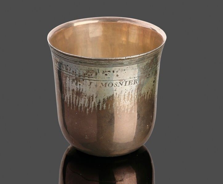 A Cul-rond goblet in 950 thousandths silver, the lip decorated with fillet and engraved "J Mosnier".