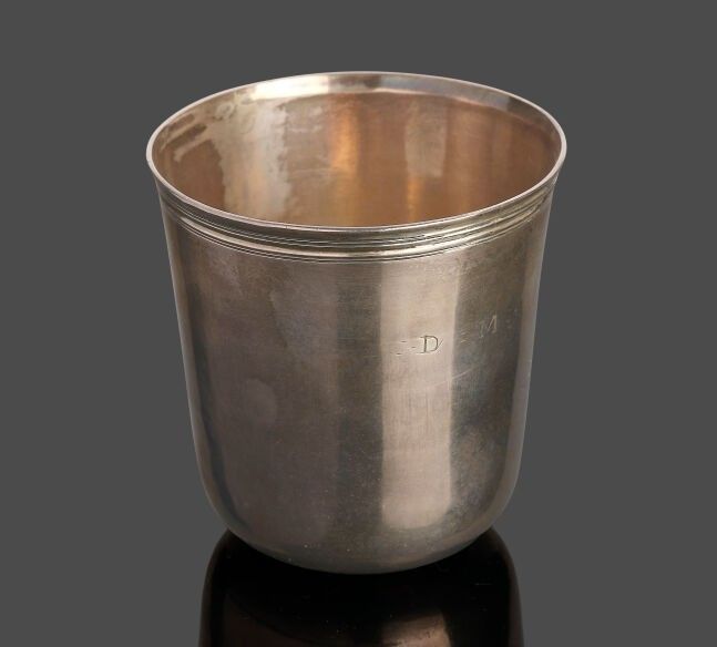 Curon goblet in 950 thousandths silver, the lip decorated with fillets and engraved with the monogram "DM".