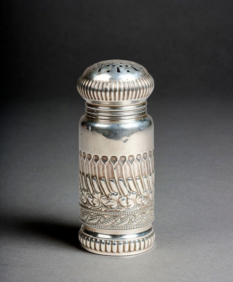 GORHAM - Saupoudroir in silver (925 thousandths), the body decorated with twisted gadroons, friezes of foliage and friezes of pearls.