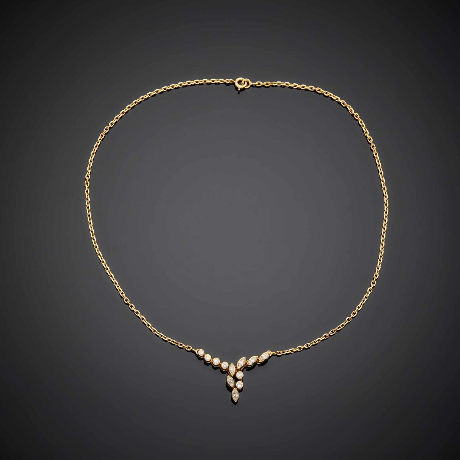 Necklace in 18 k yellow gold (750 thousandths) set with a diamond motif including navette diamonds.