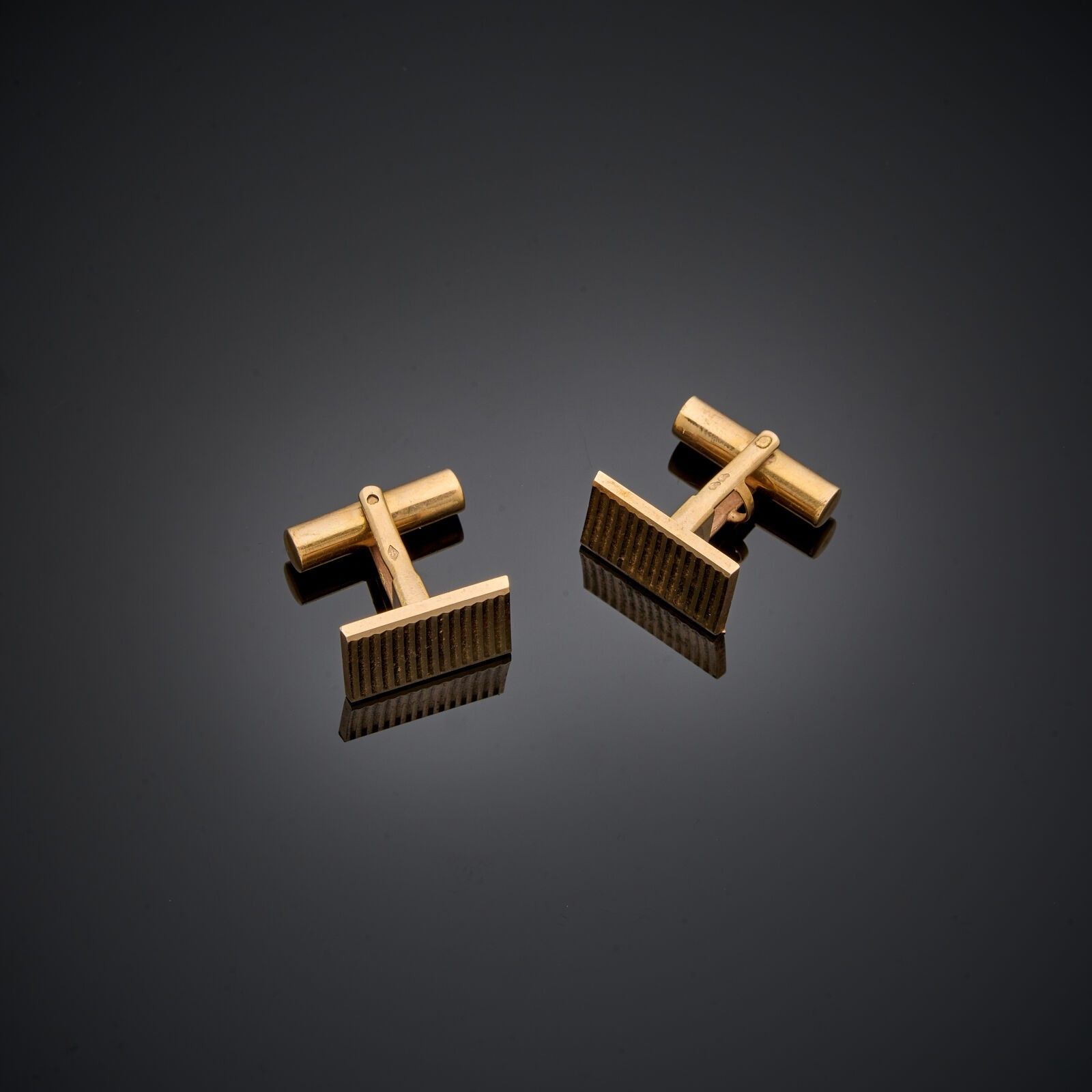 Pair of cufflinks in 18k (750 thousandths) yellow gold with rectangular fluted ends.
