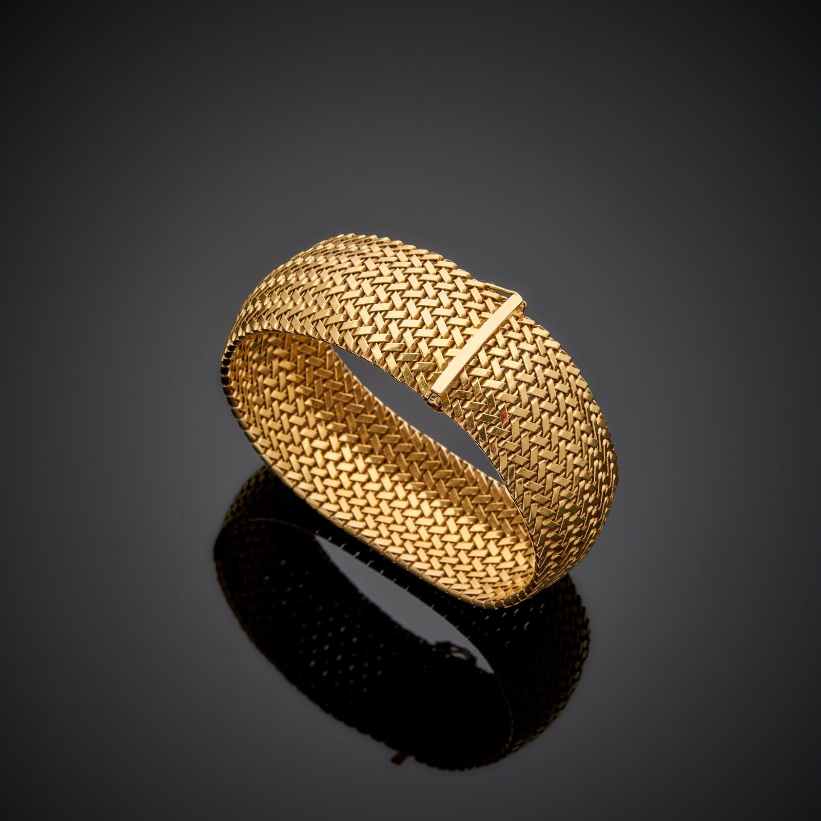 18 k (750 thousandths) yellow gold plaited ribbon bracelet.