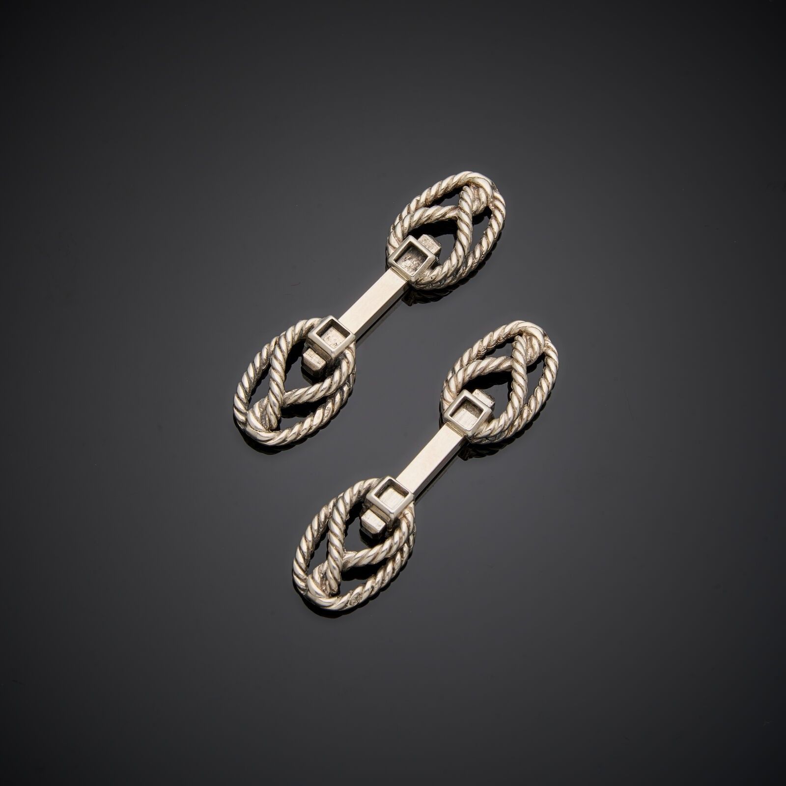 Pair of silver cufflinks (800 thousandths) with interlaced k…