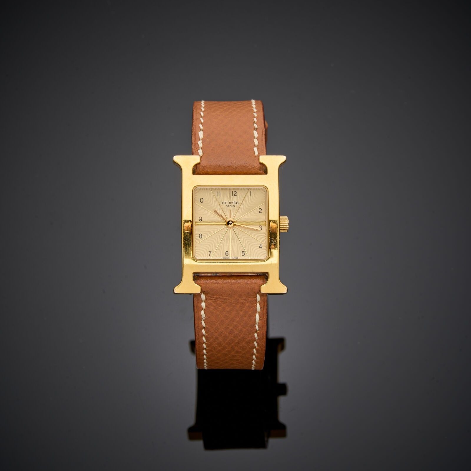 HERMES - Paris . Heure H" quartz movement, gilt metal, chase…