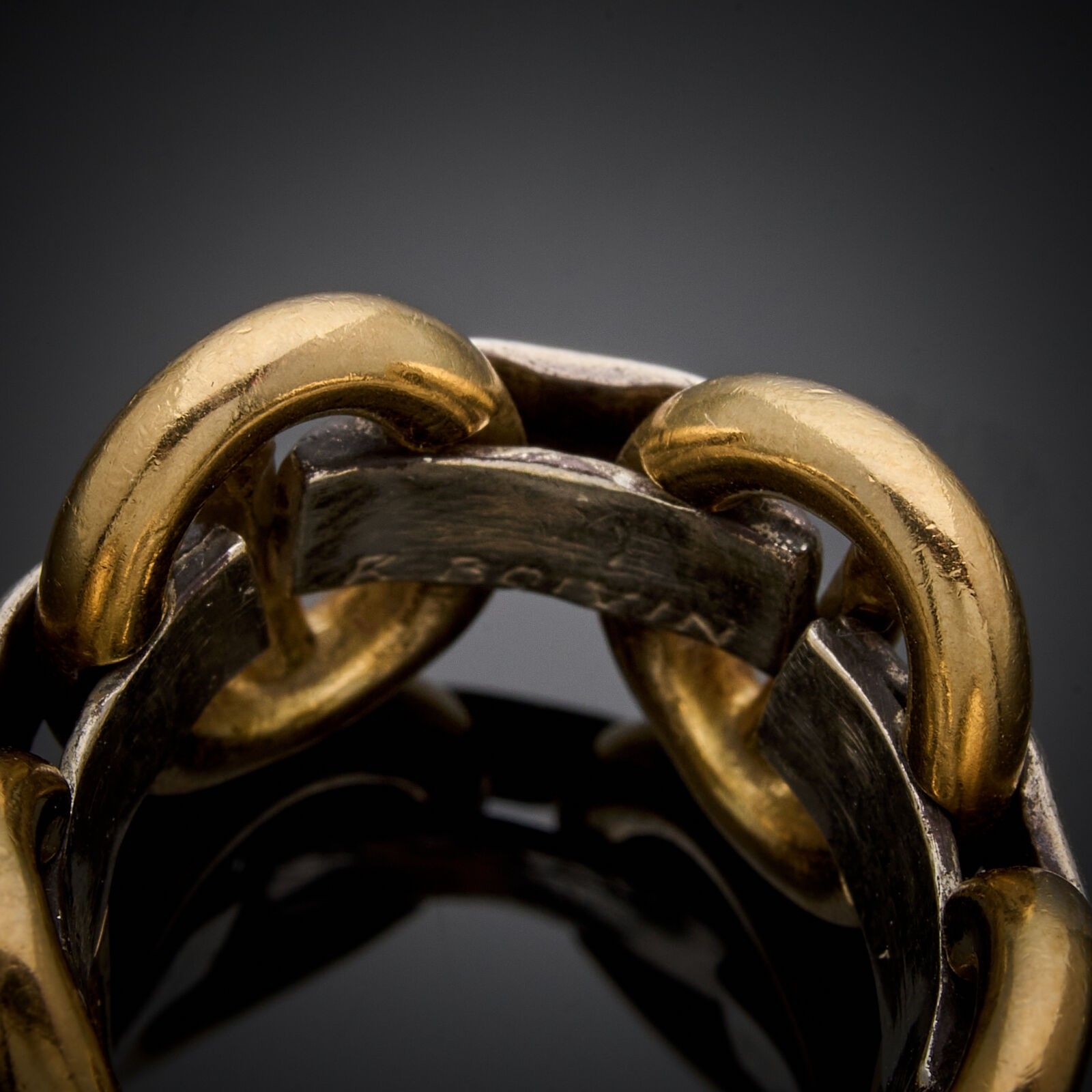 René BOIVIN - Articulated "belt" ring with links in 18 k (750 thousandths) yellow gold and silver.