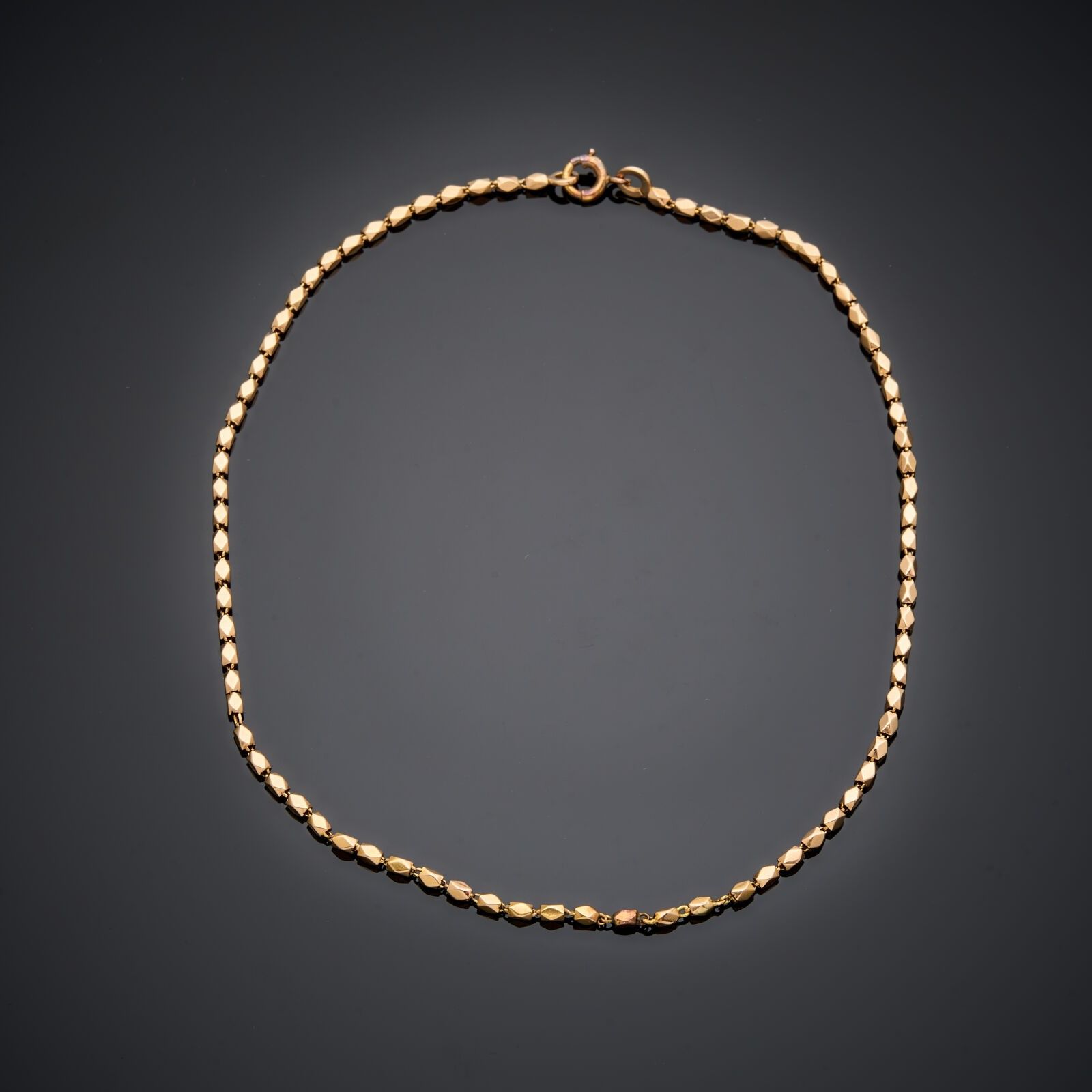 18 k (750 thousandths) yellow gold chain with geometric motifs.