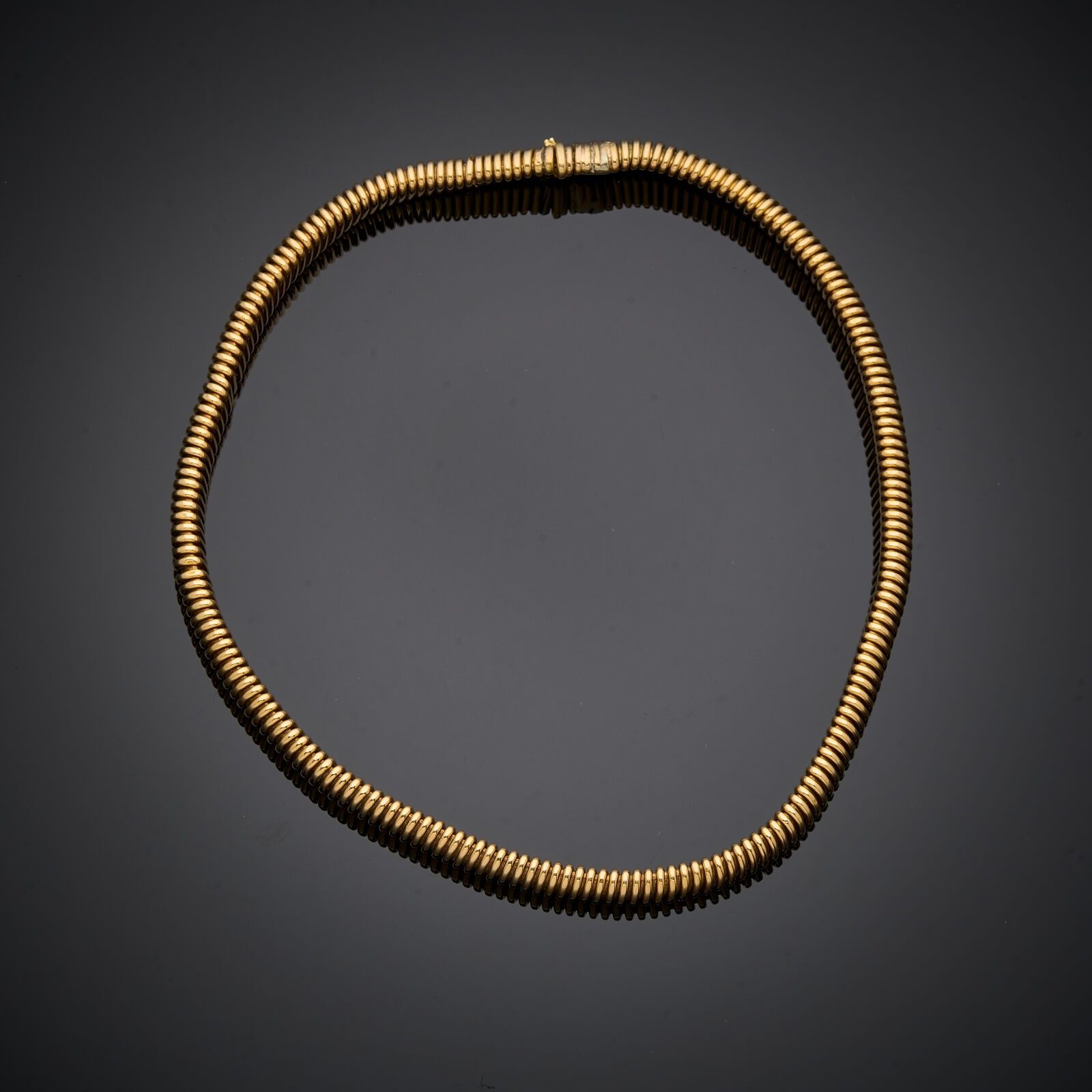18 k (750 thousandths) yellow gold tubogas necklace. (knocks and restoration)