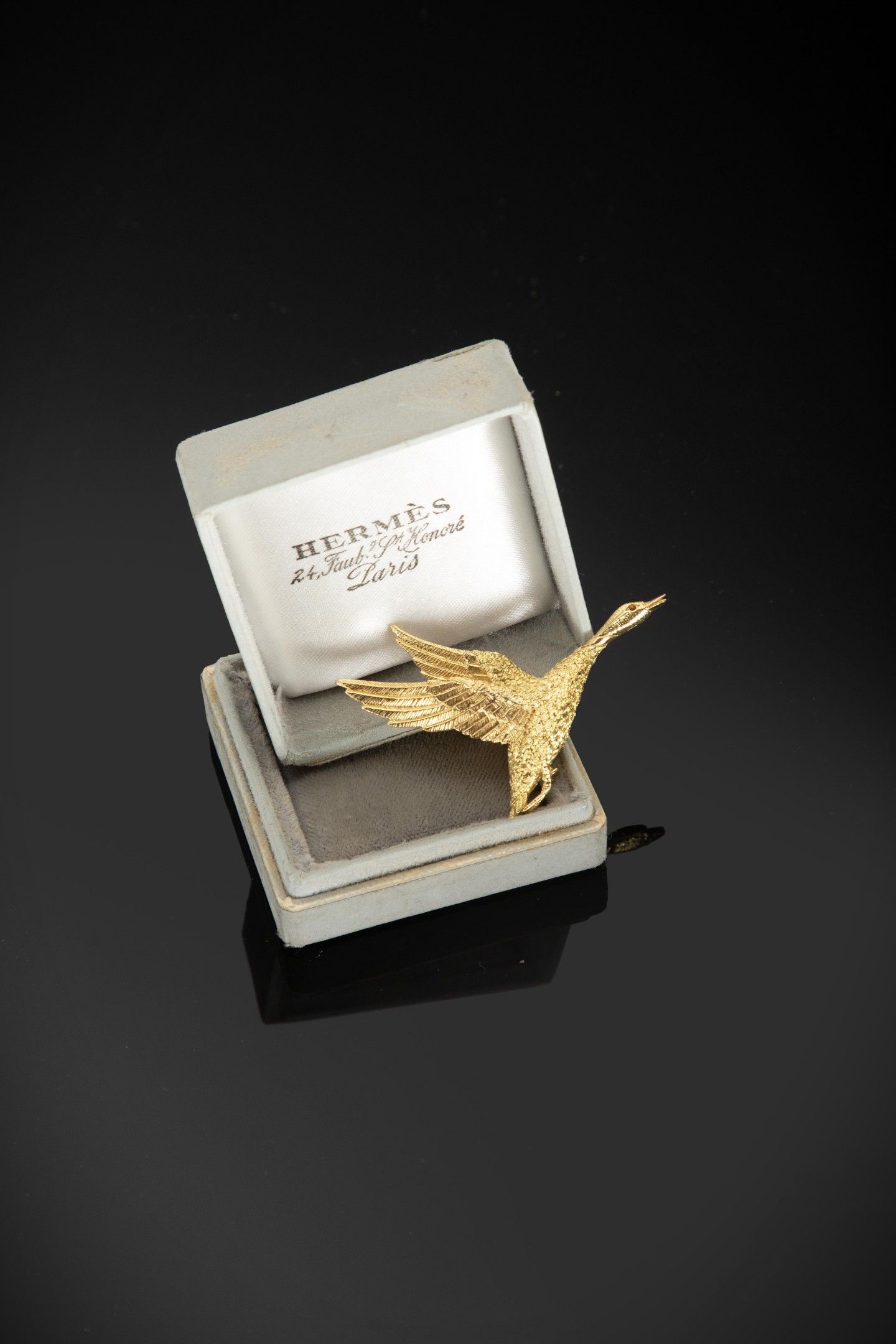 HERMES Paris - Duck brooch "en vol" in 18k yellow gold (750 …