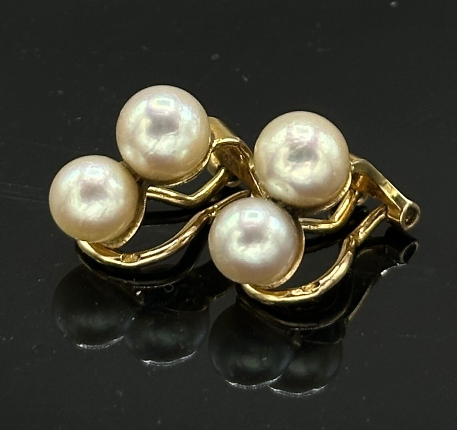 Pair of 18 k (750 thousandths) yellow gold ear clips adorned with two superimposed pearls.