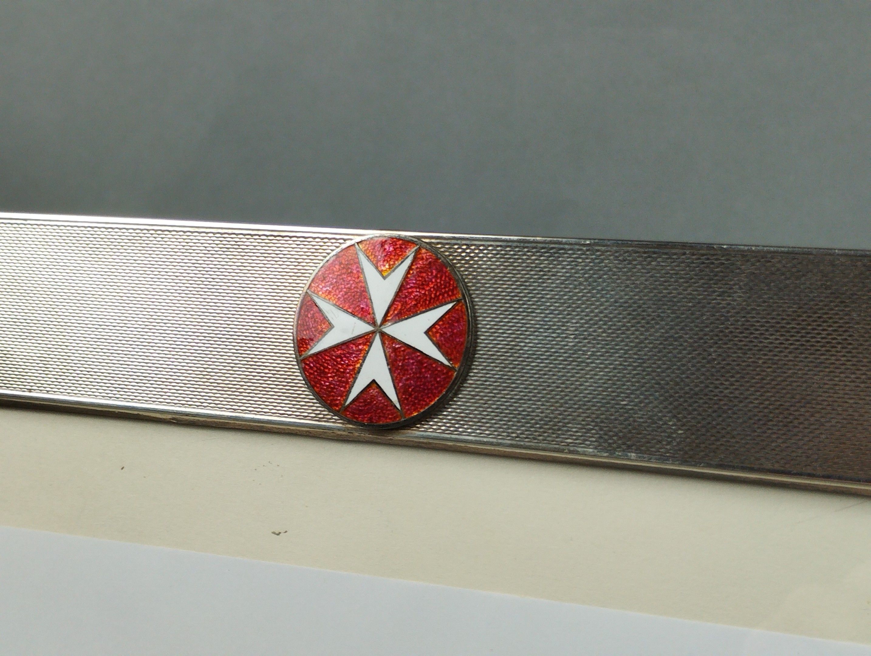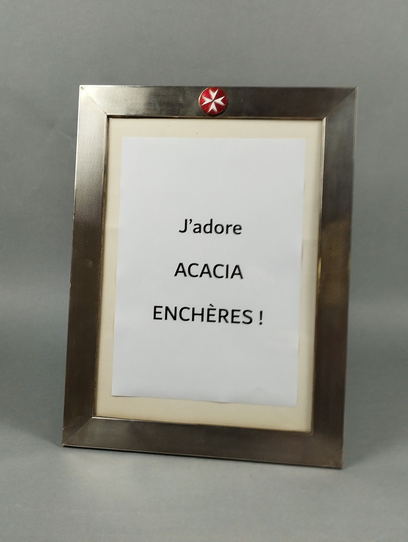 Very large solid silver (800/00) photograph frame with guilloché decoration, decorated with an enamelled medallion with the cross of the Order of Malta. 1940s-1950s, Italy. 40.5 x 31.5 cm