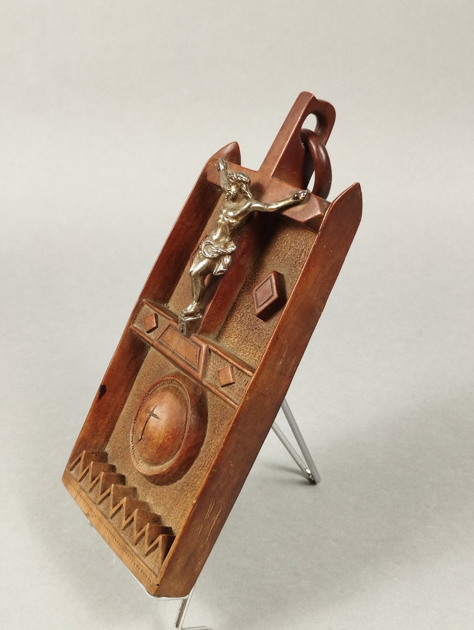EQUATORIAL AFRICA (Cameroon?). Carved wooden devotional wall crucifix from the 1900s. Height 25 cm - width 10 cm.