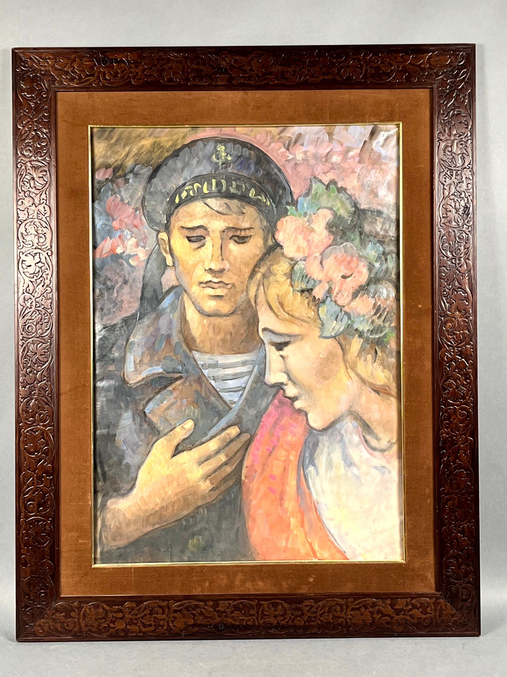 Early 20th century Russian school. Young people. Acrylic on paper. 73 x 54.5 cm.