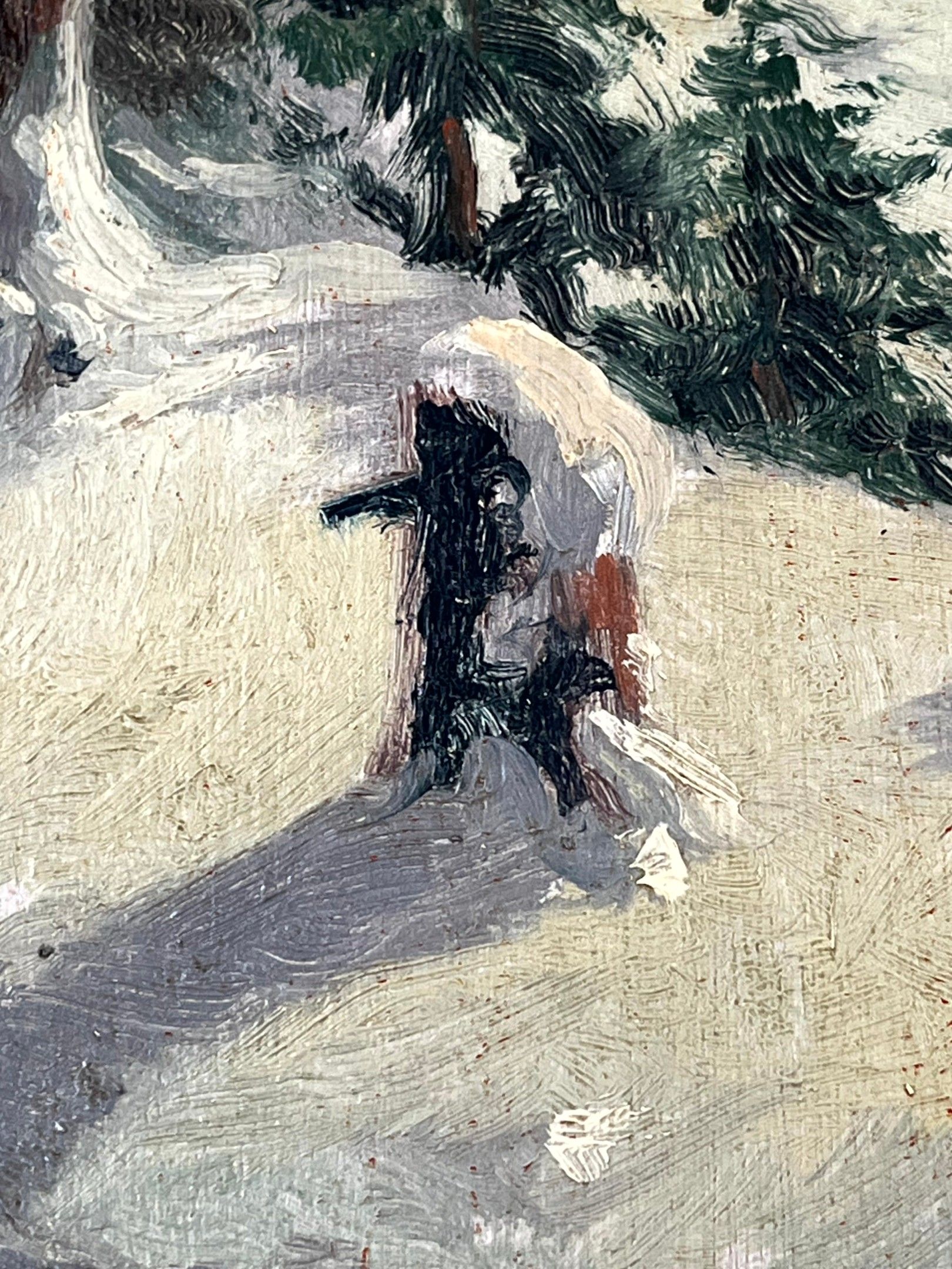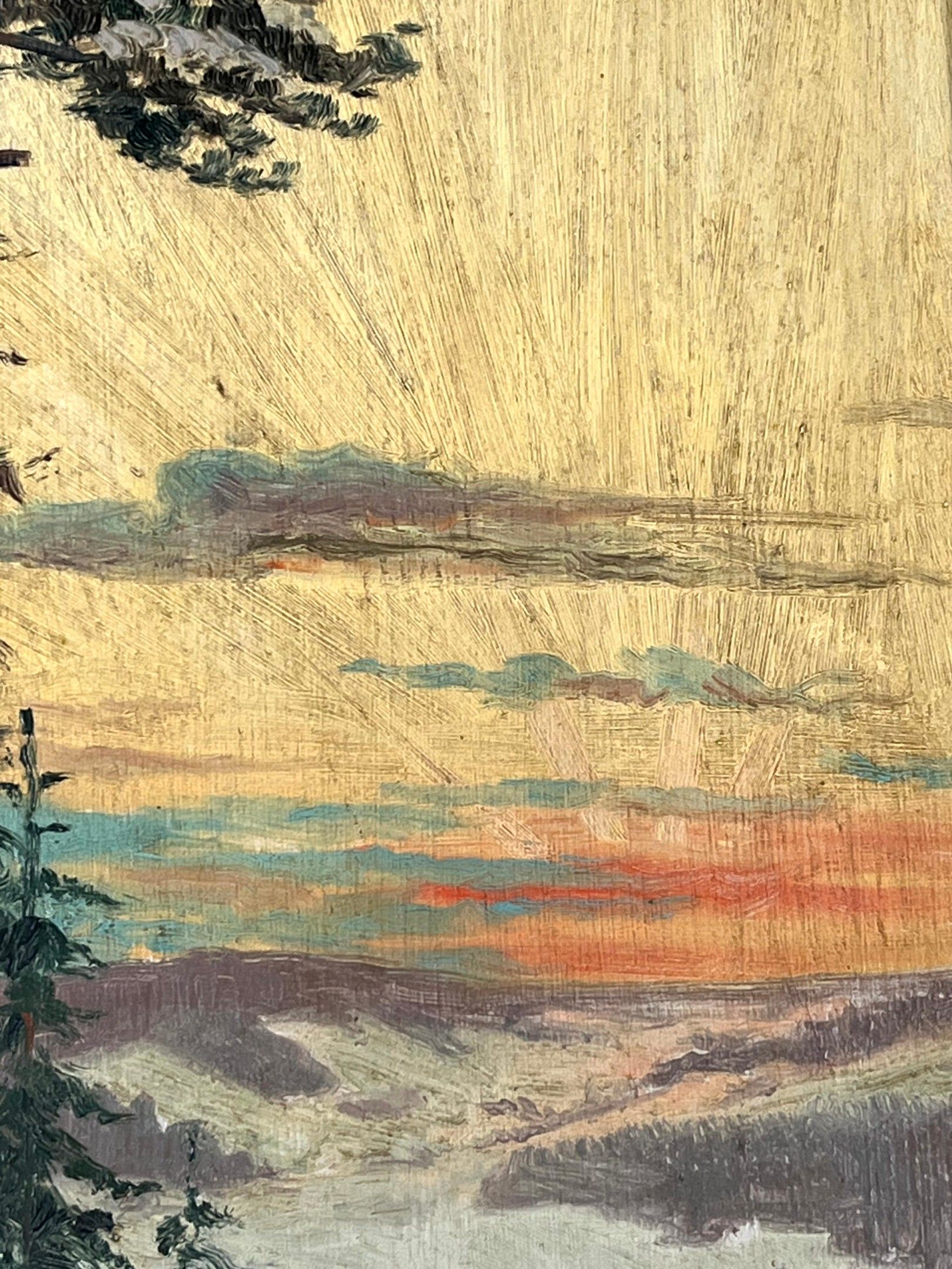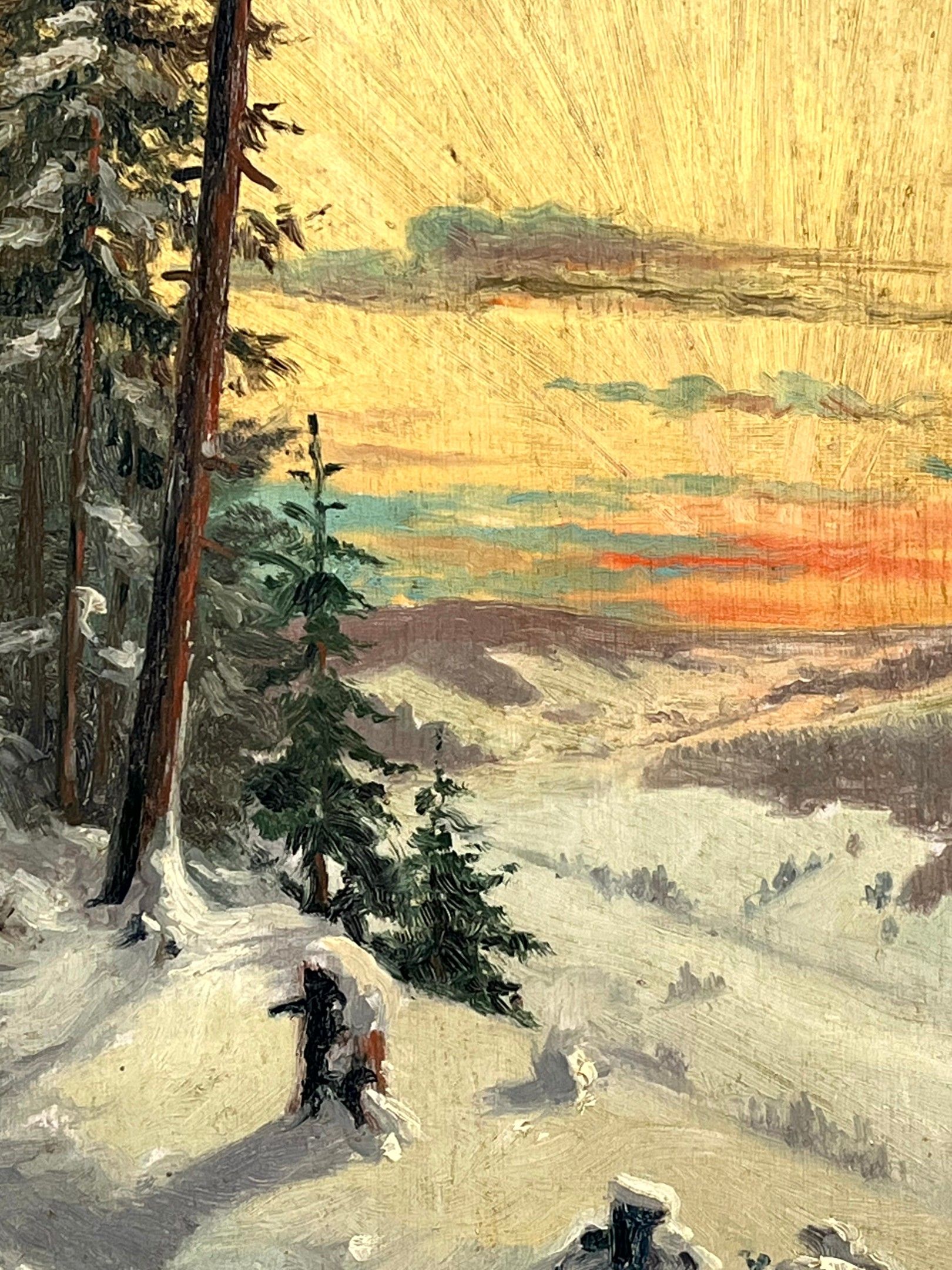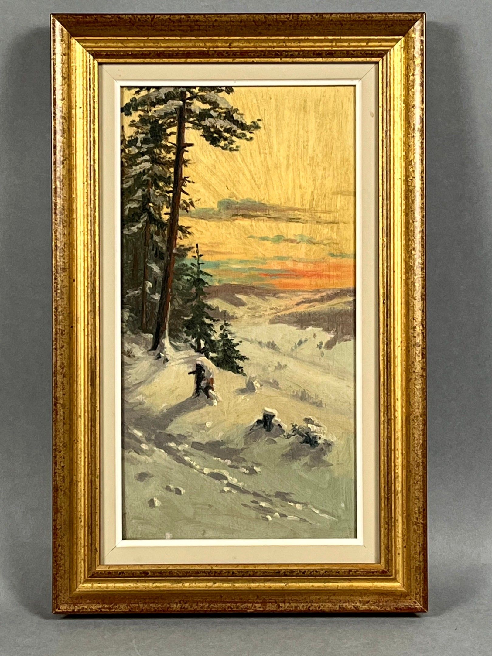 Early 20th century French school. Vosges landscape at dusk, under the snow. Oil on panel. 40 x 22 cm.