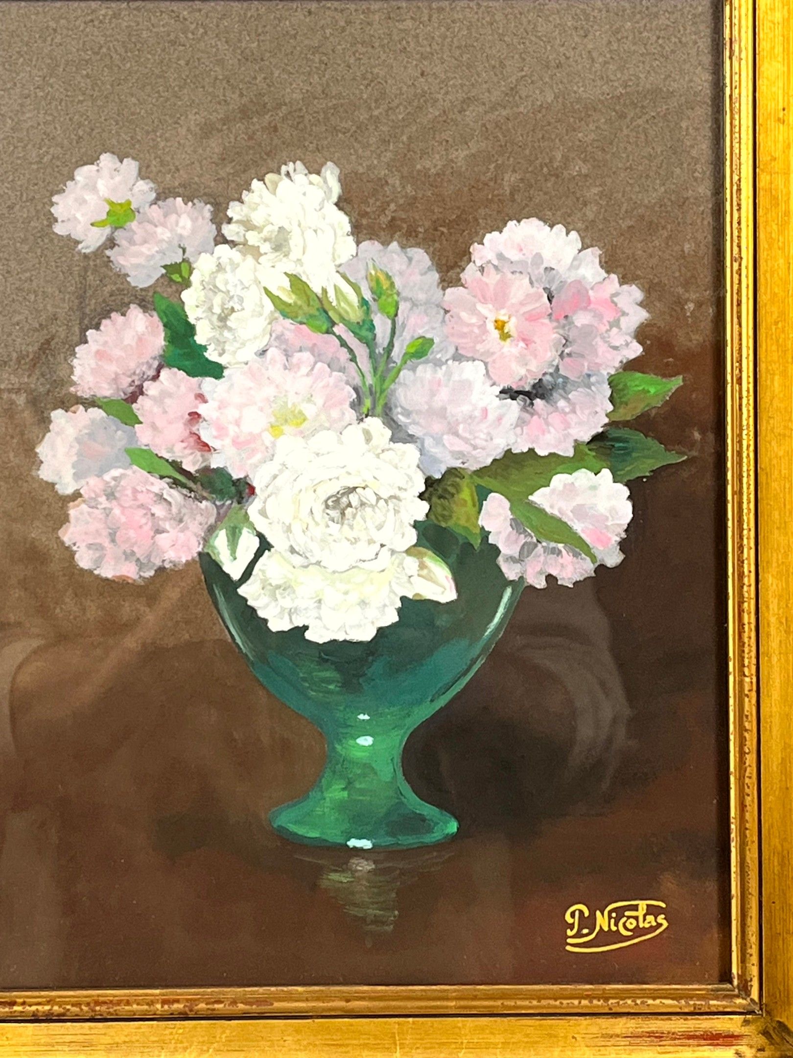 Paul NICOLAS (1875-1952), Lorraine. Pair of gouaches on paper depicting pompom flowers. Signed lower right. Numbered 672 and 675 on the reverse. Circa 1920. 29.5 x 22.5 cm.