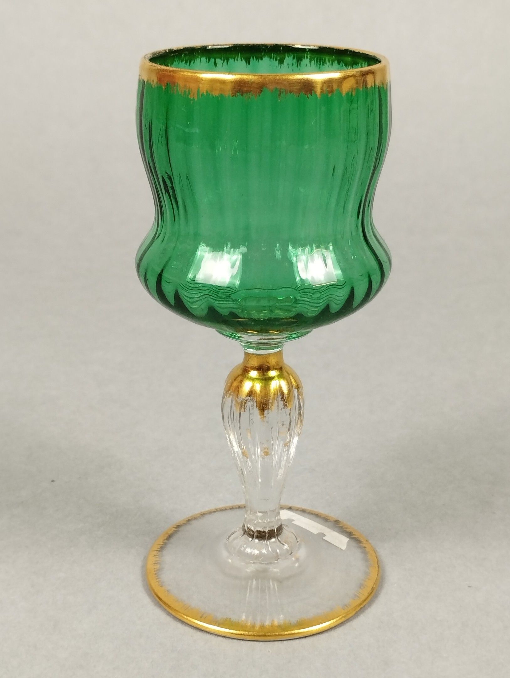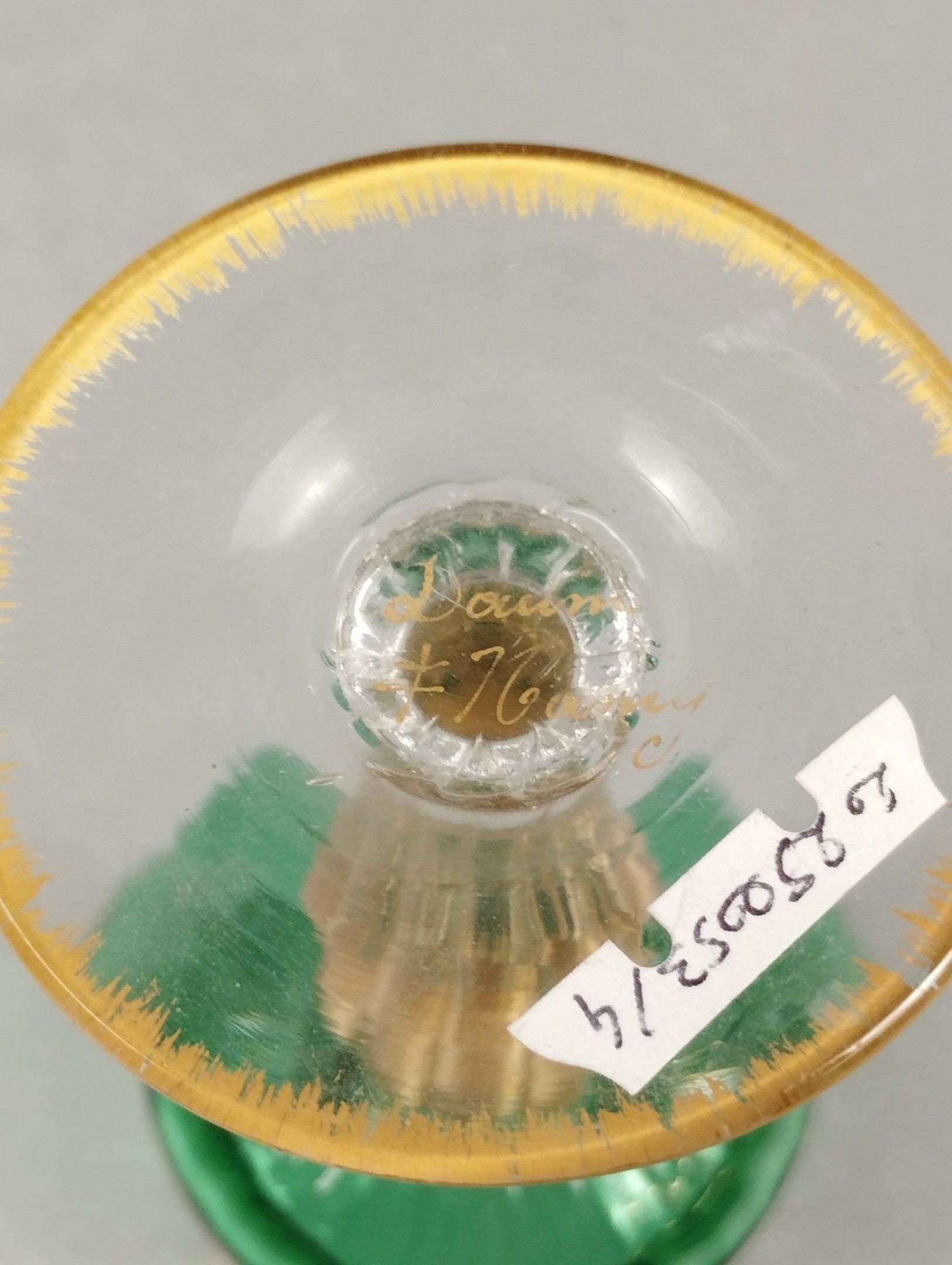 DAUM, Nancy (Lorraine). Stemmed glass in two-tone glass with gold highlights. Signature with the cross of Lorraine under the foot. Circa 1890. Height 12.5 cm.