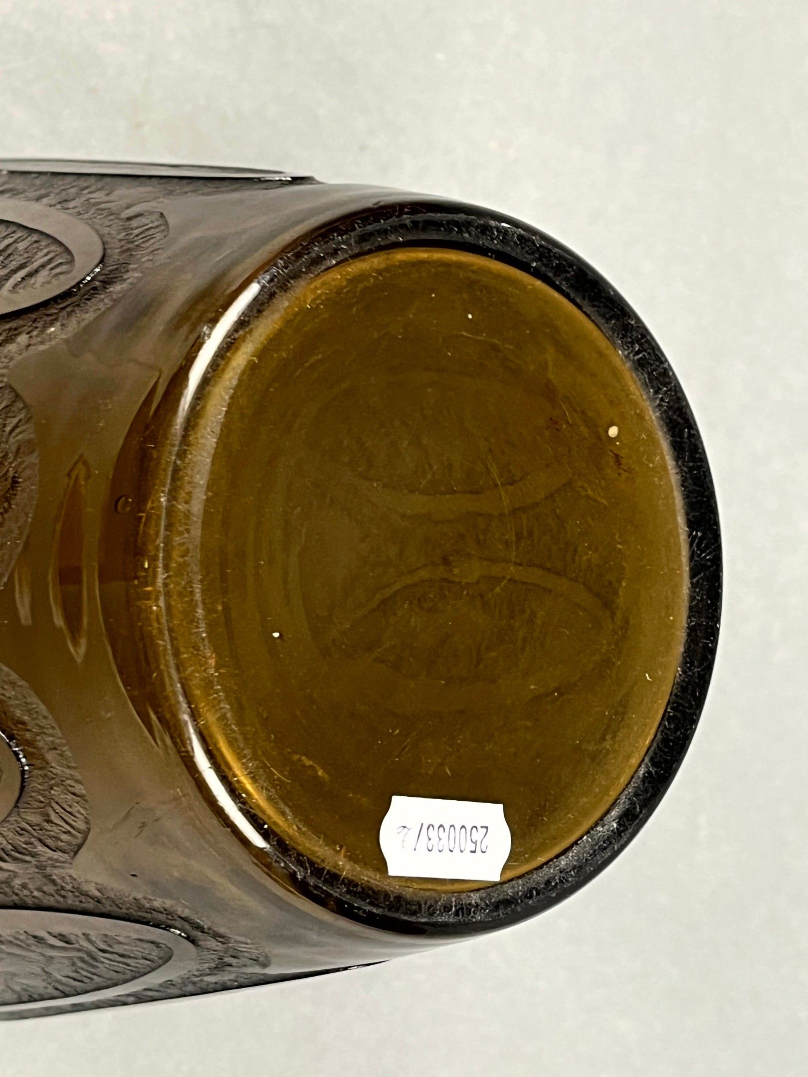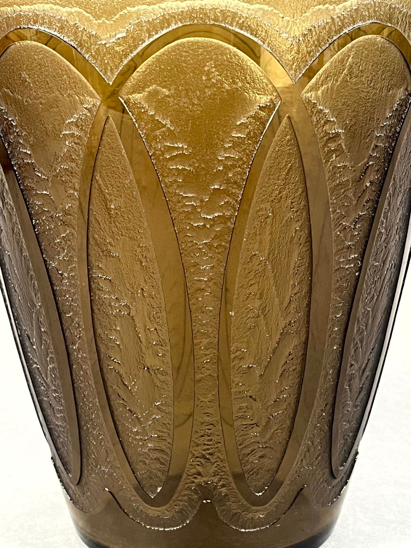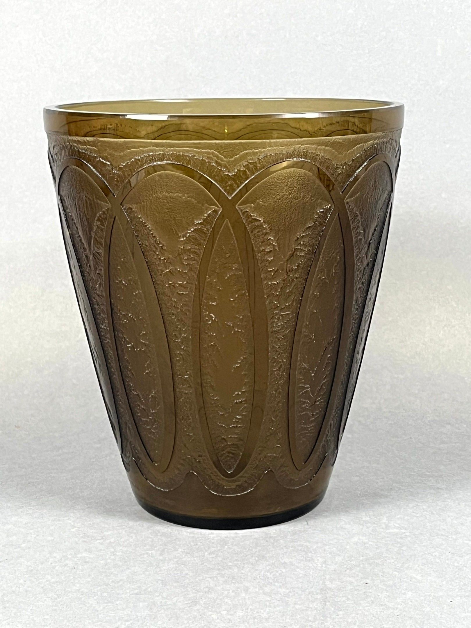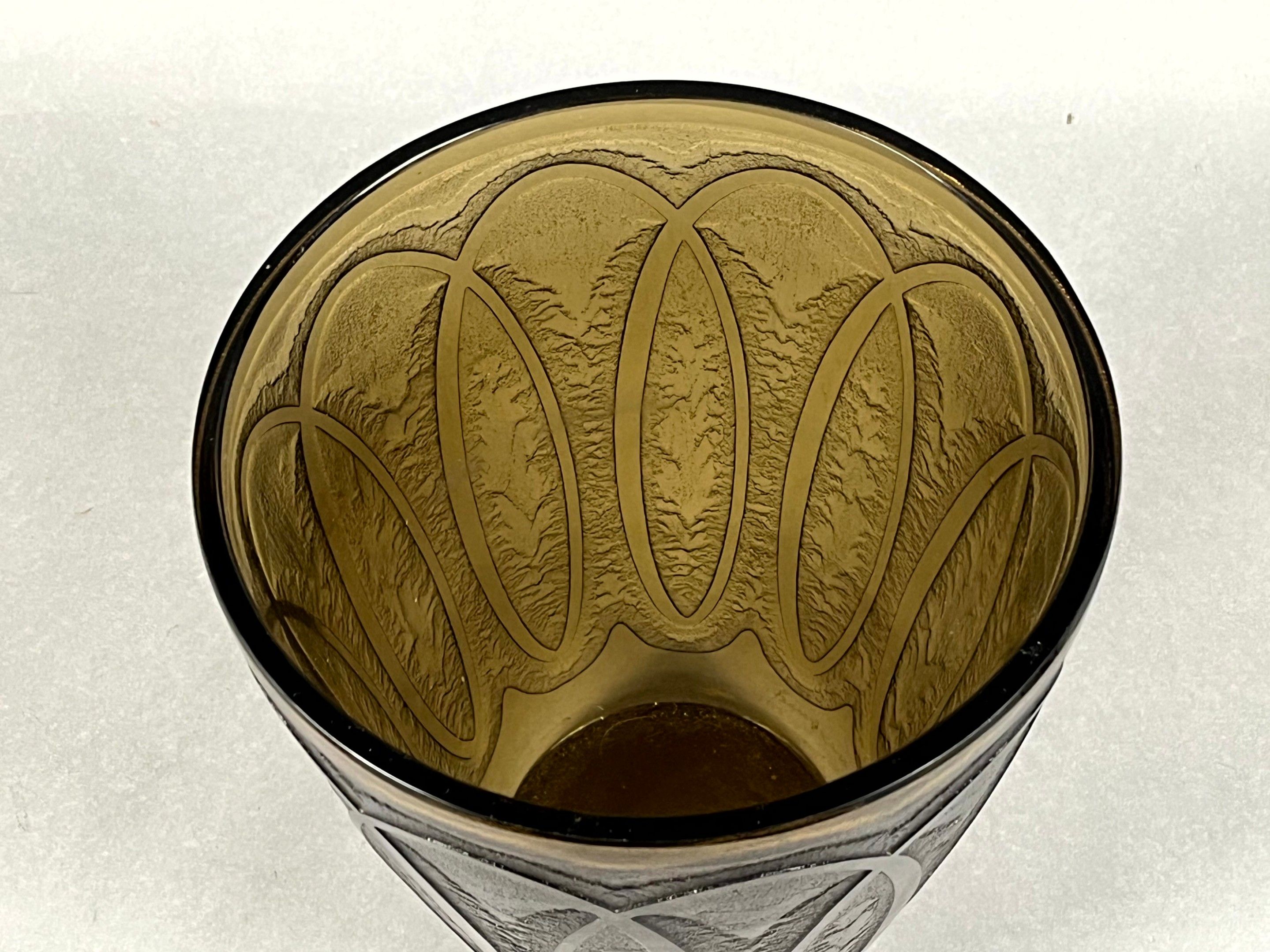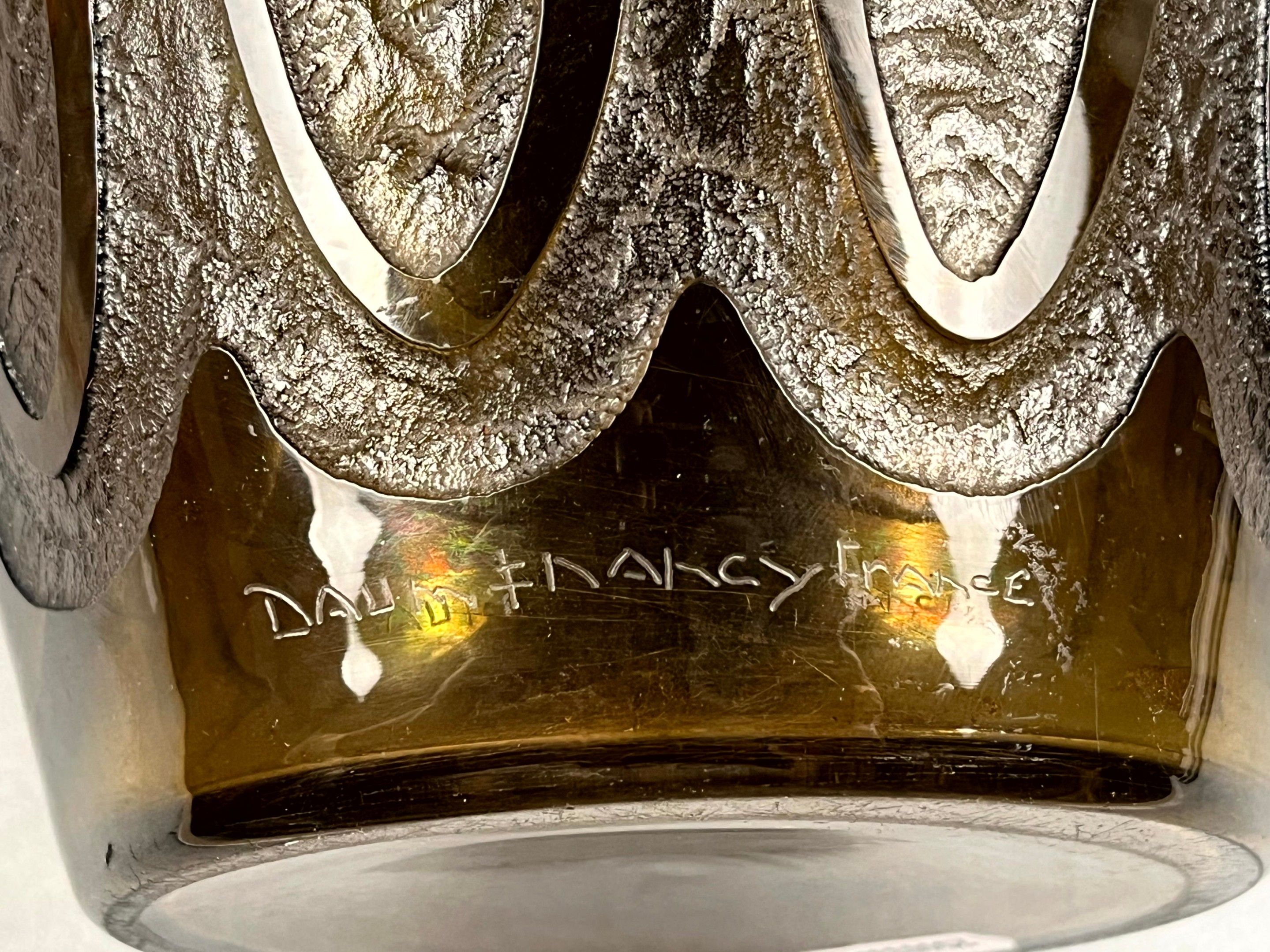 Premium DAUM, Nancy (Lorraine). Art Deco smoked glass vase etched wi…